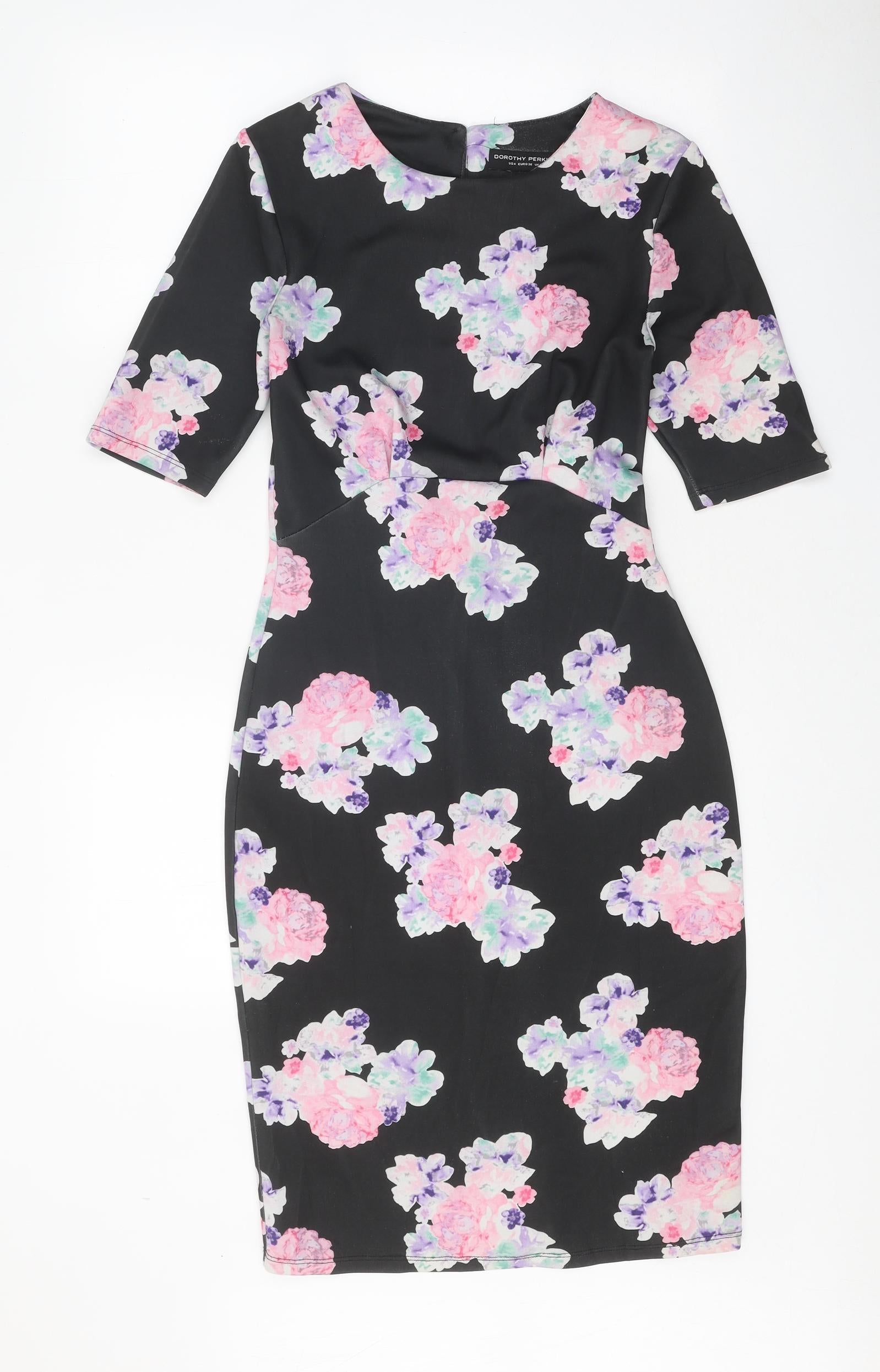 Dorothy Perkins Womens Multicoloured Floral Polyester Bodycon Size 8 Round Neck Button