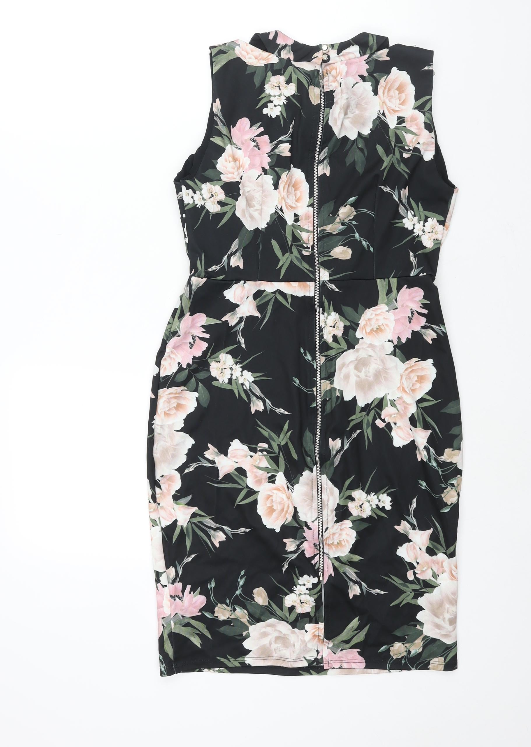 Dorothy Perkins Womens Multicoloured Floral Polyester Pencil Dress Size 12 Mock Neck Zip