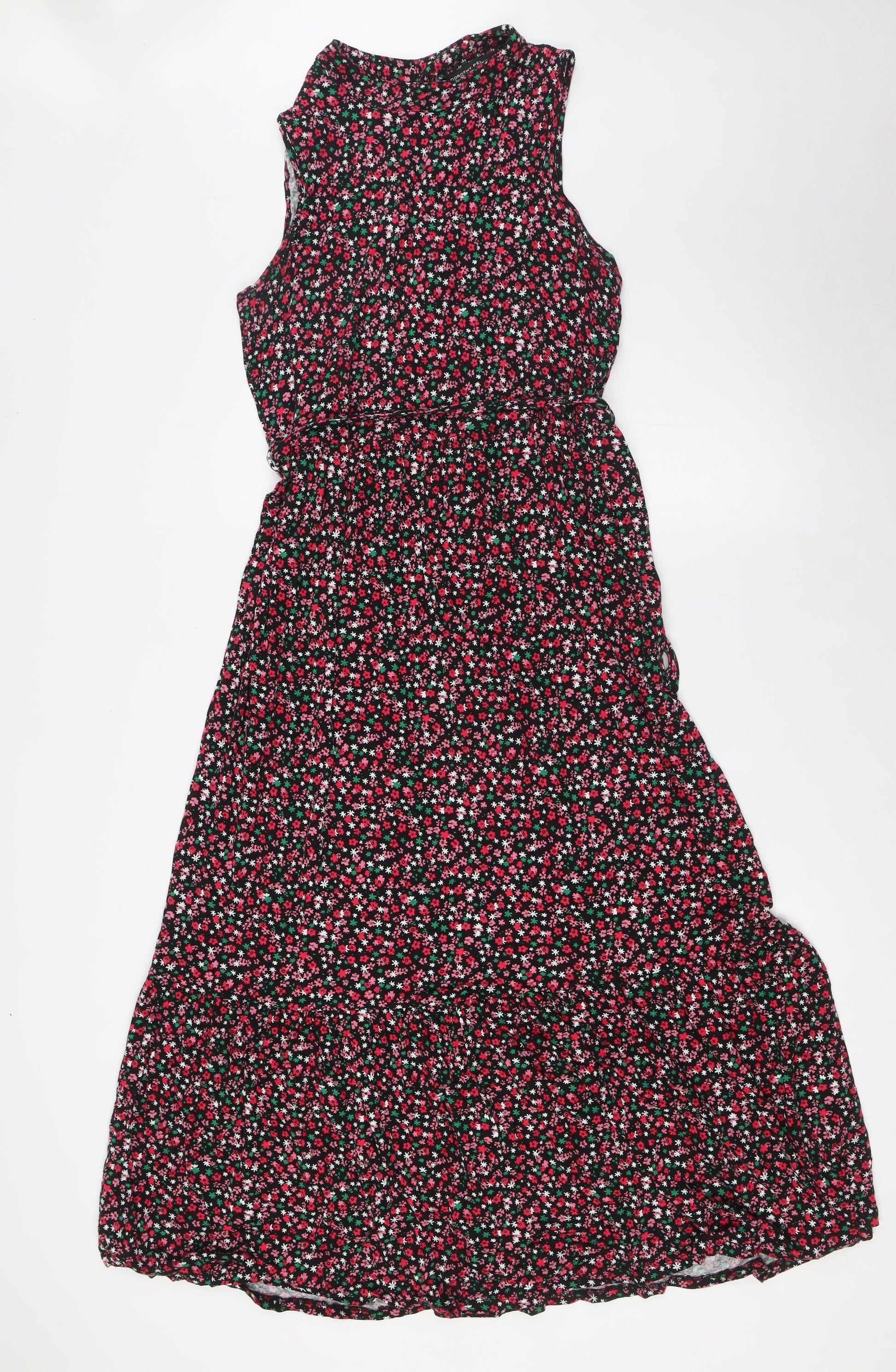 Dorothy Perkins Womens Multicoloured Floral Viscose A-Line Size 12 Mock Neck Button - Belted