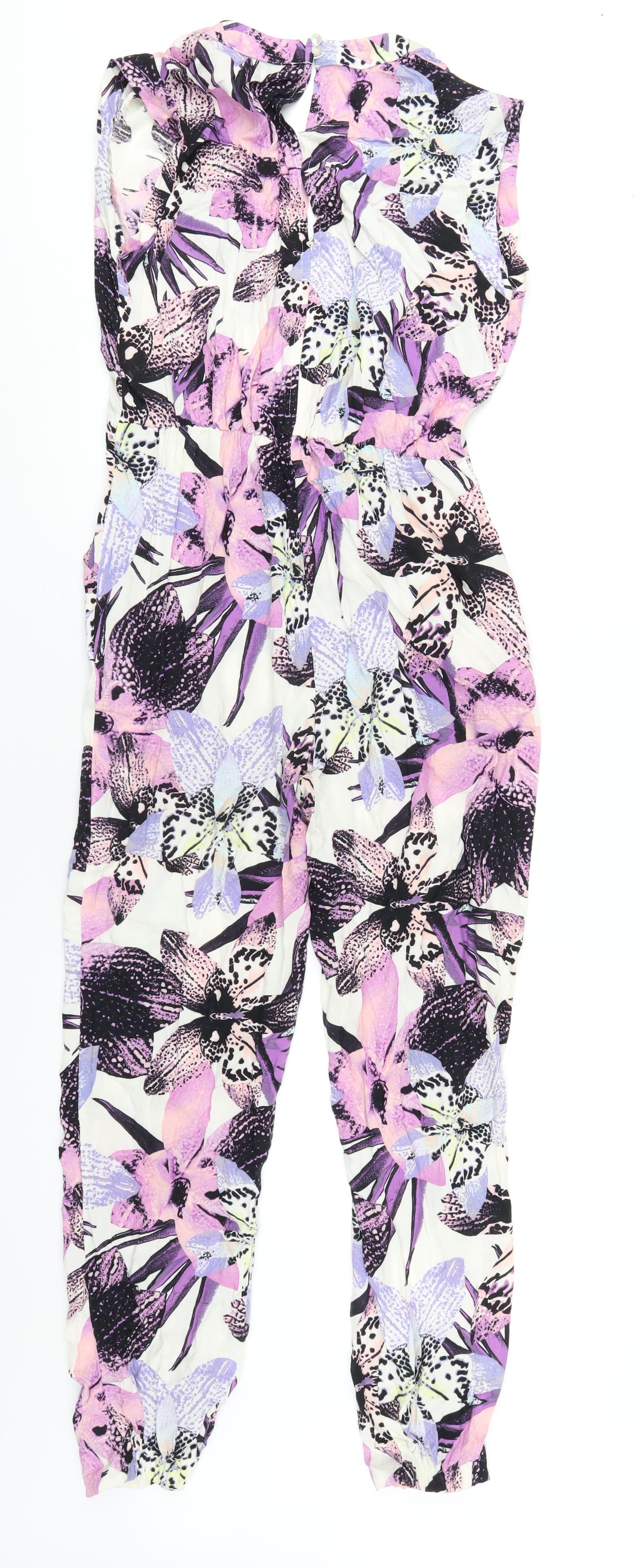 Dorothy Perkins Womens Multicoloured Floral Viscose Jumpsuit One-Piece Size 10 L29 in Zip