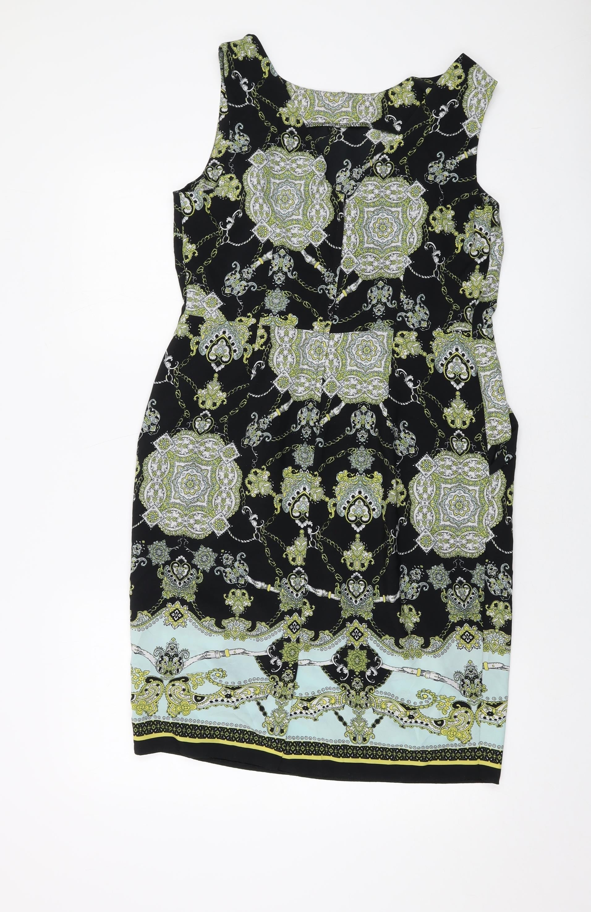 Dorothy Perkins Womens Multicoloured Geometric Polyester Sheath Size 14 Round Neck Zip