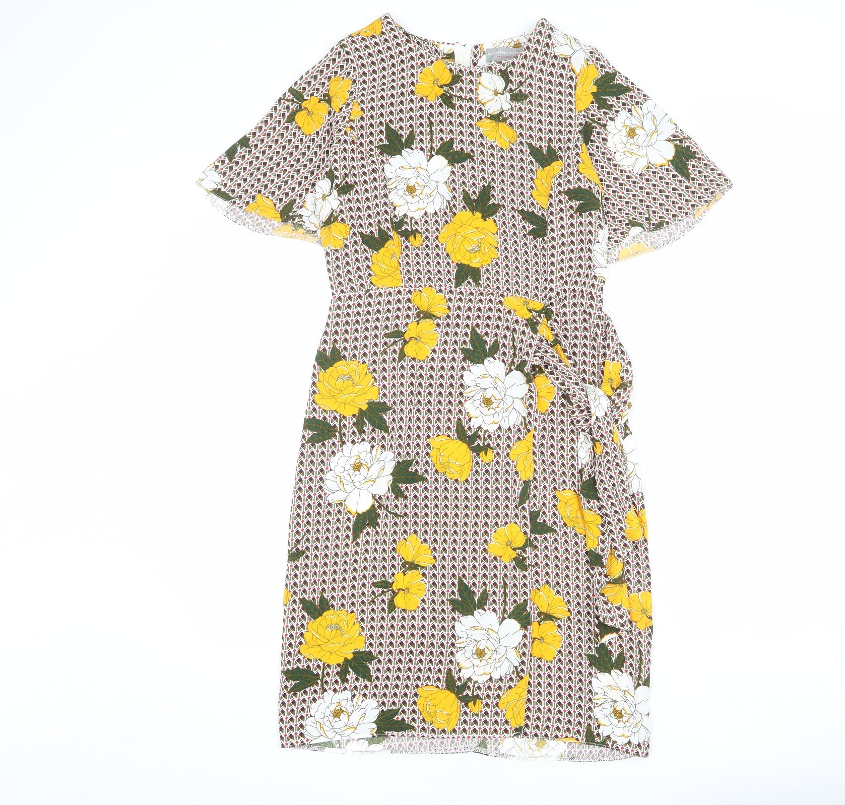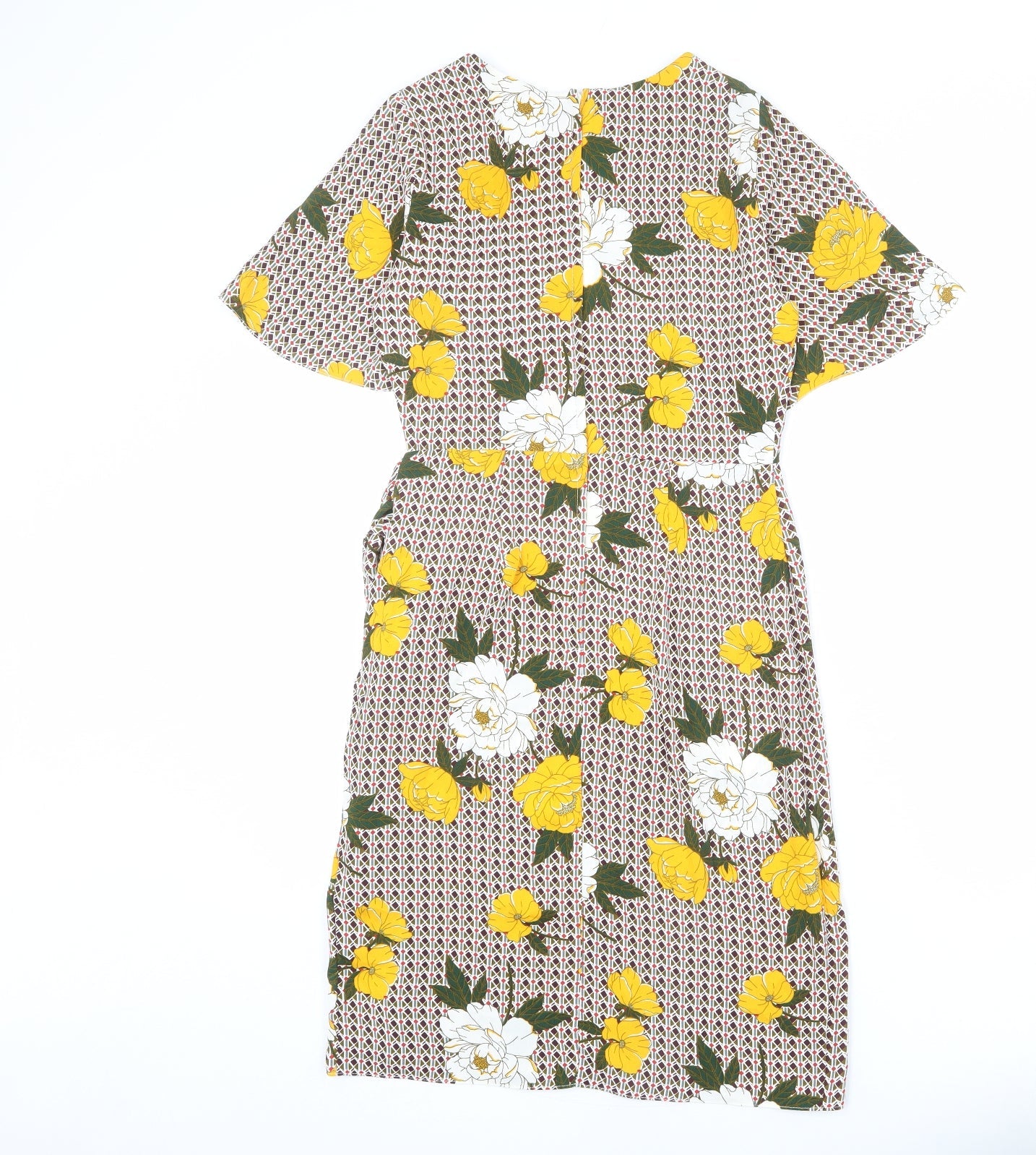 Dorothy Perkins Womens Multicoloured Geometric Polyester Sheath Size 8 Roll Neck Zip - Floral Detail, Tie Front