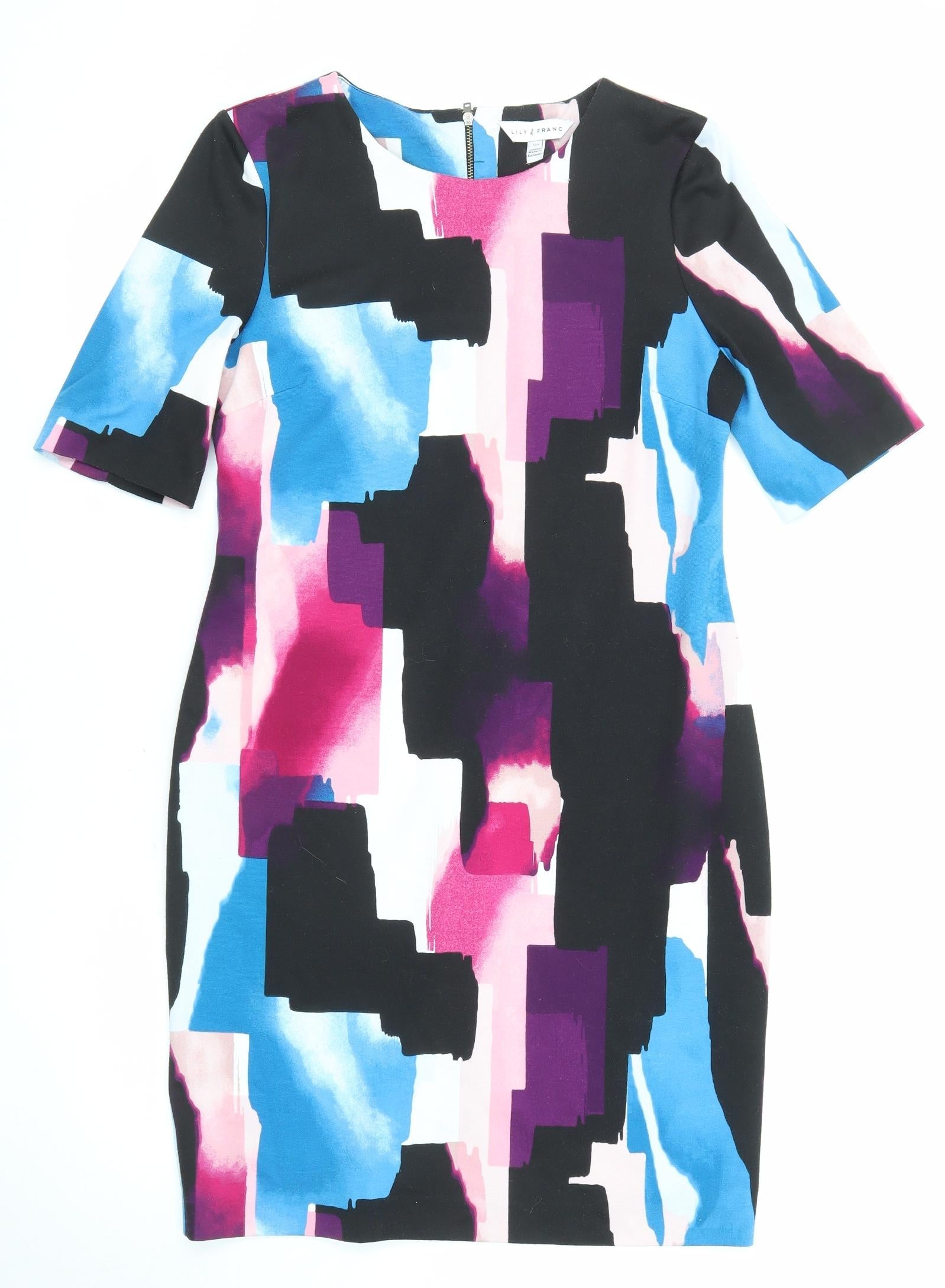 Dorothy Perkins Womens Multicoloured Geometric Polyester Shift Size 12 Round Neck Zip