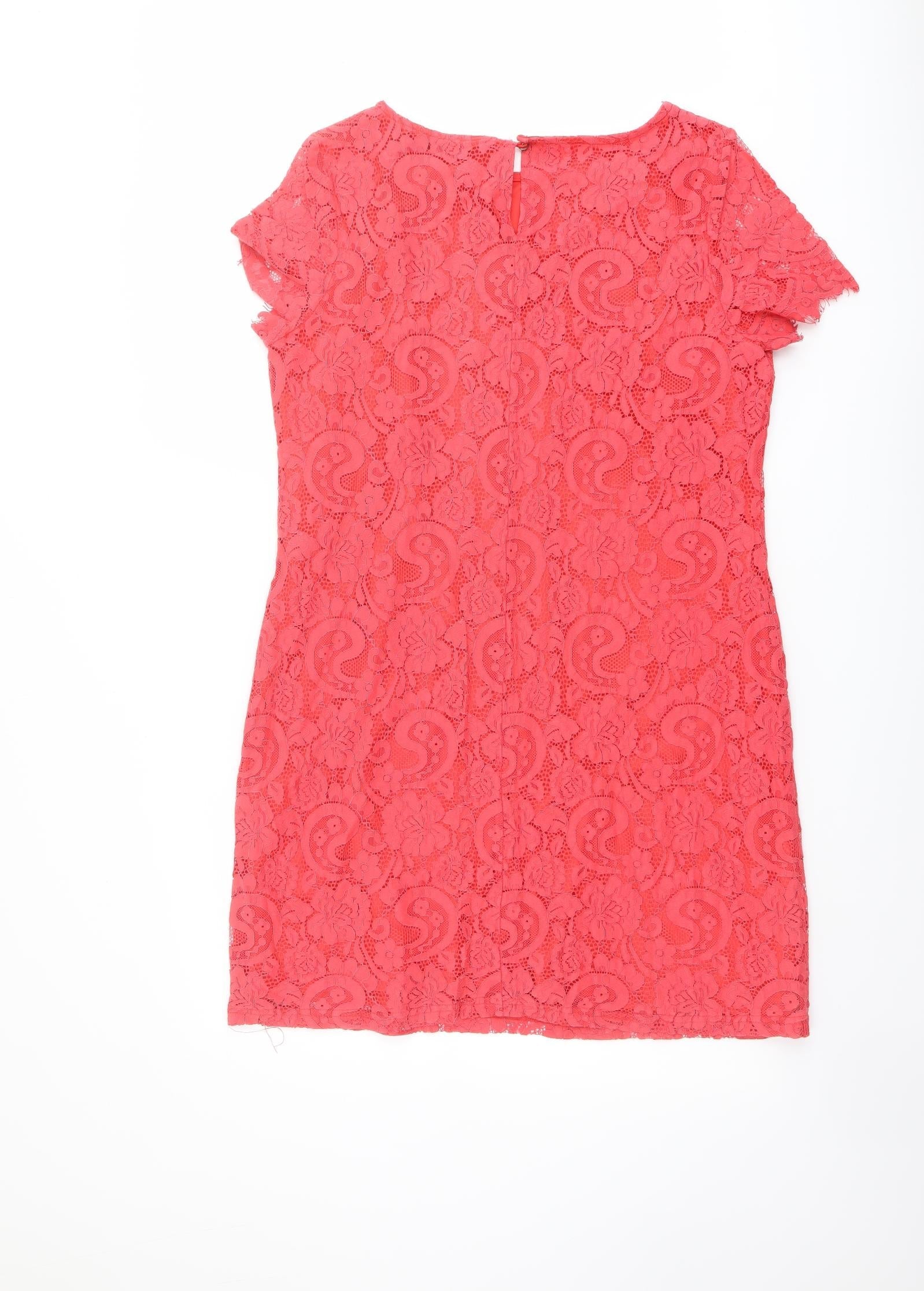 Dorothy Perkins Womens Orange Geometric Nylon Shift Size 16 Boat Neck Button