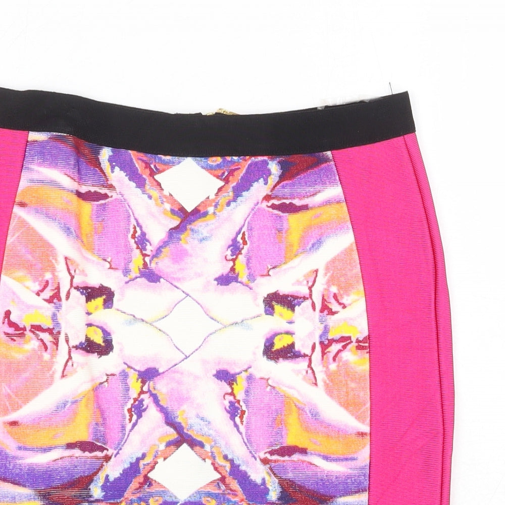Dorothy Perkins Womens Pink Geometric Viscose Bandage Skirt Size M Zip