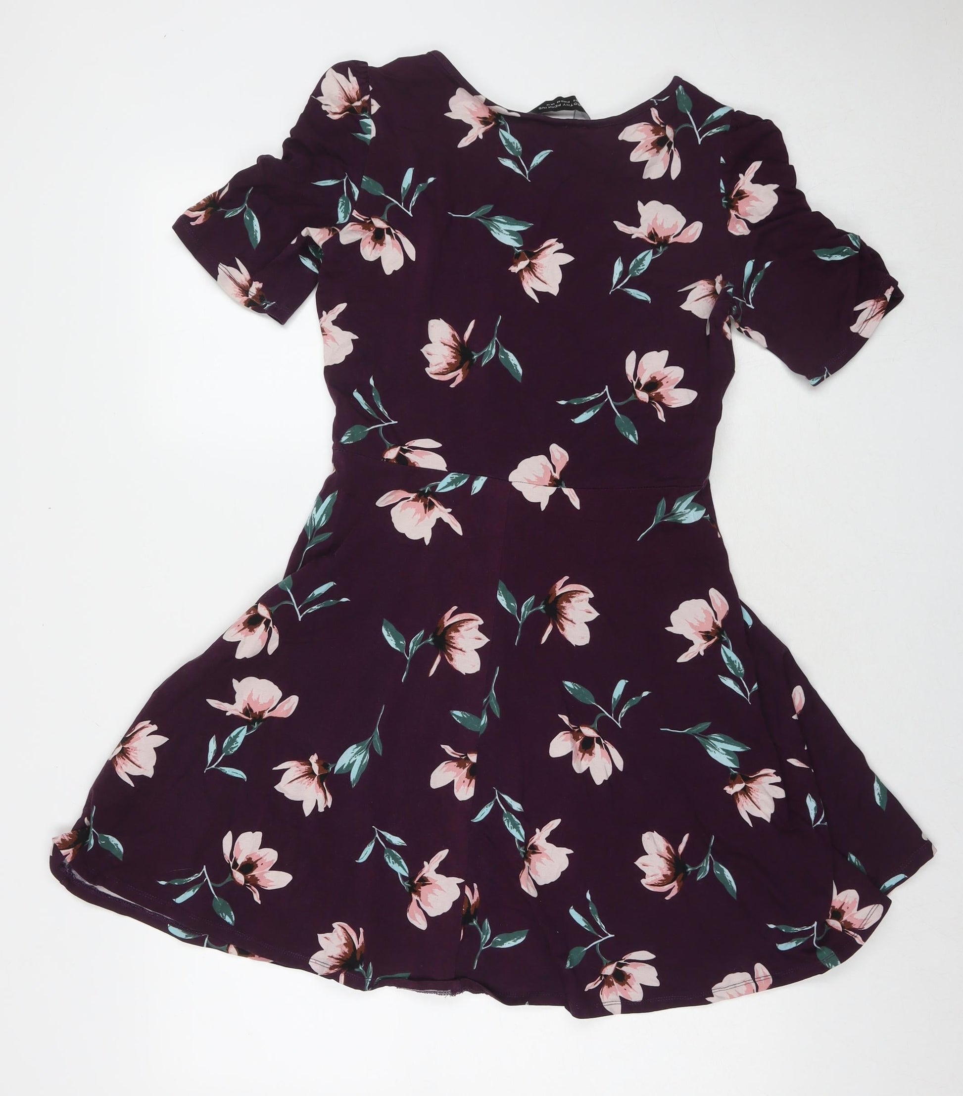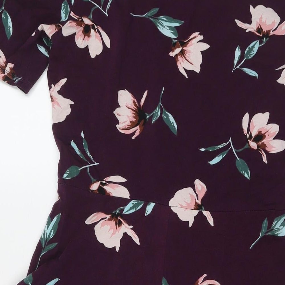 Dorothy Perkins Womens Purple Floral Cotton A-Line Size 12 Round Neck Pullover
