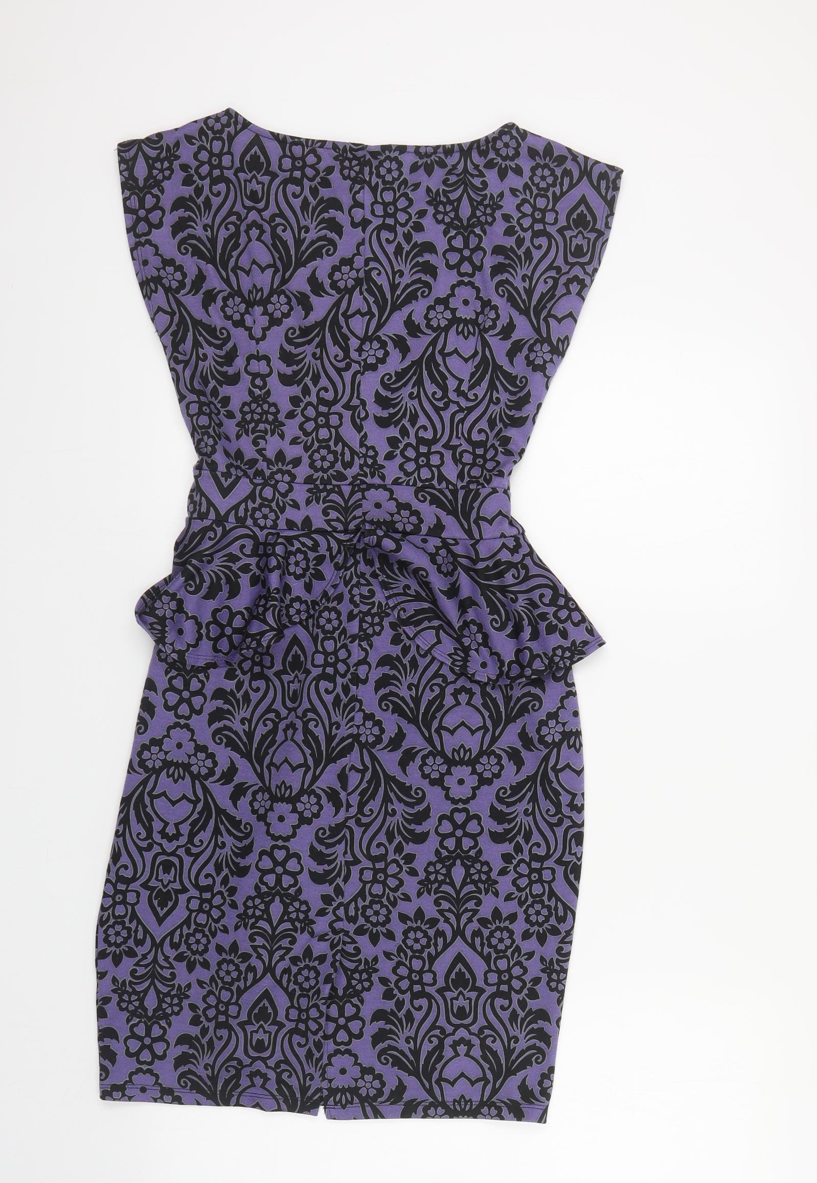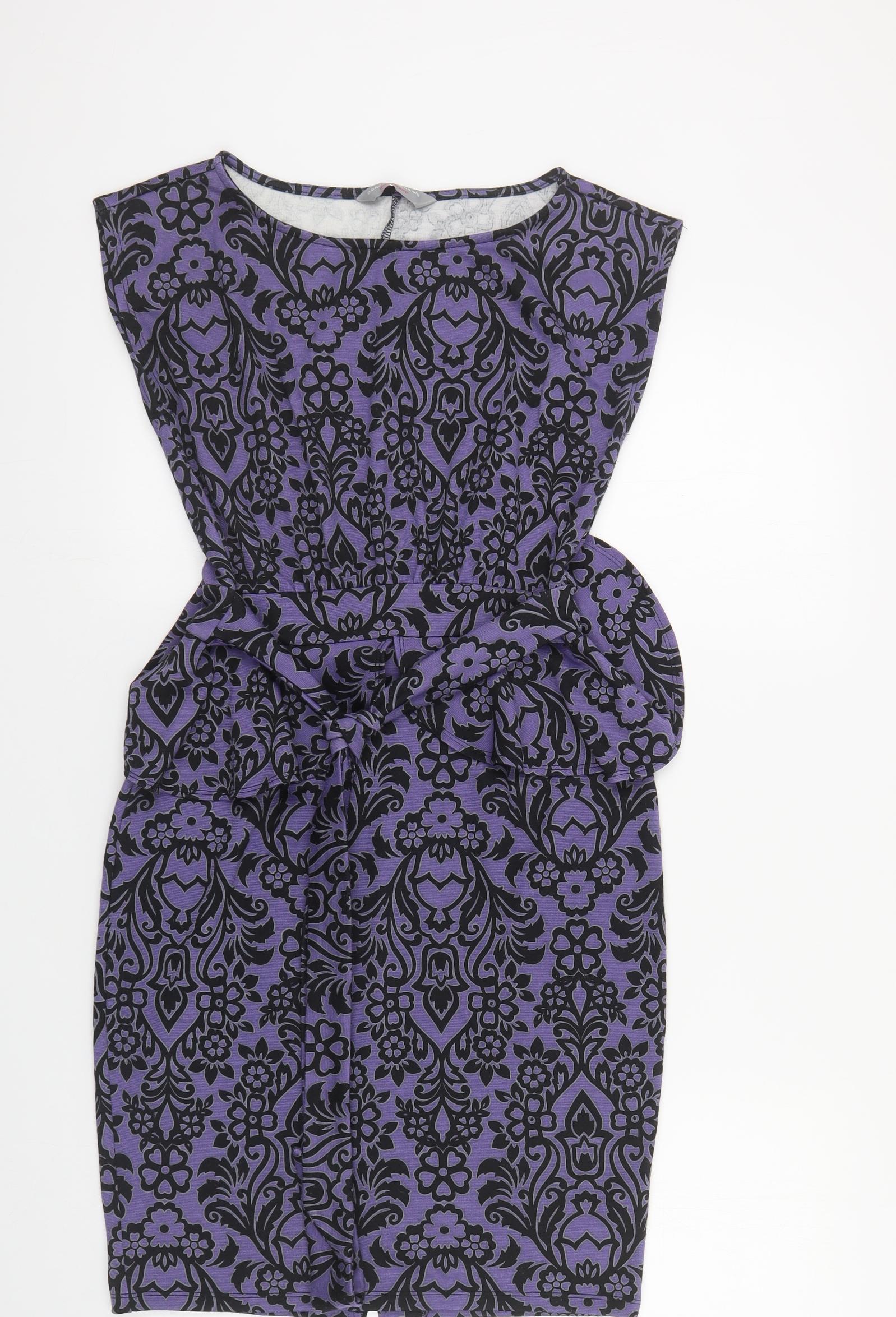 Dorothy Perkins Womens Purple Floral Polyester Pencil Dress Size 10 Boat Neck Tie