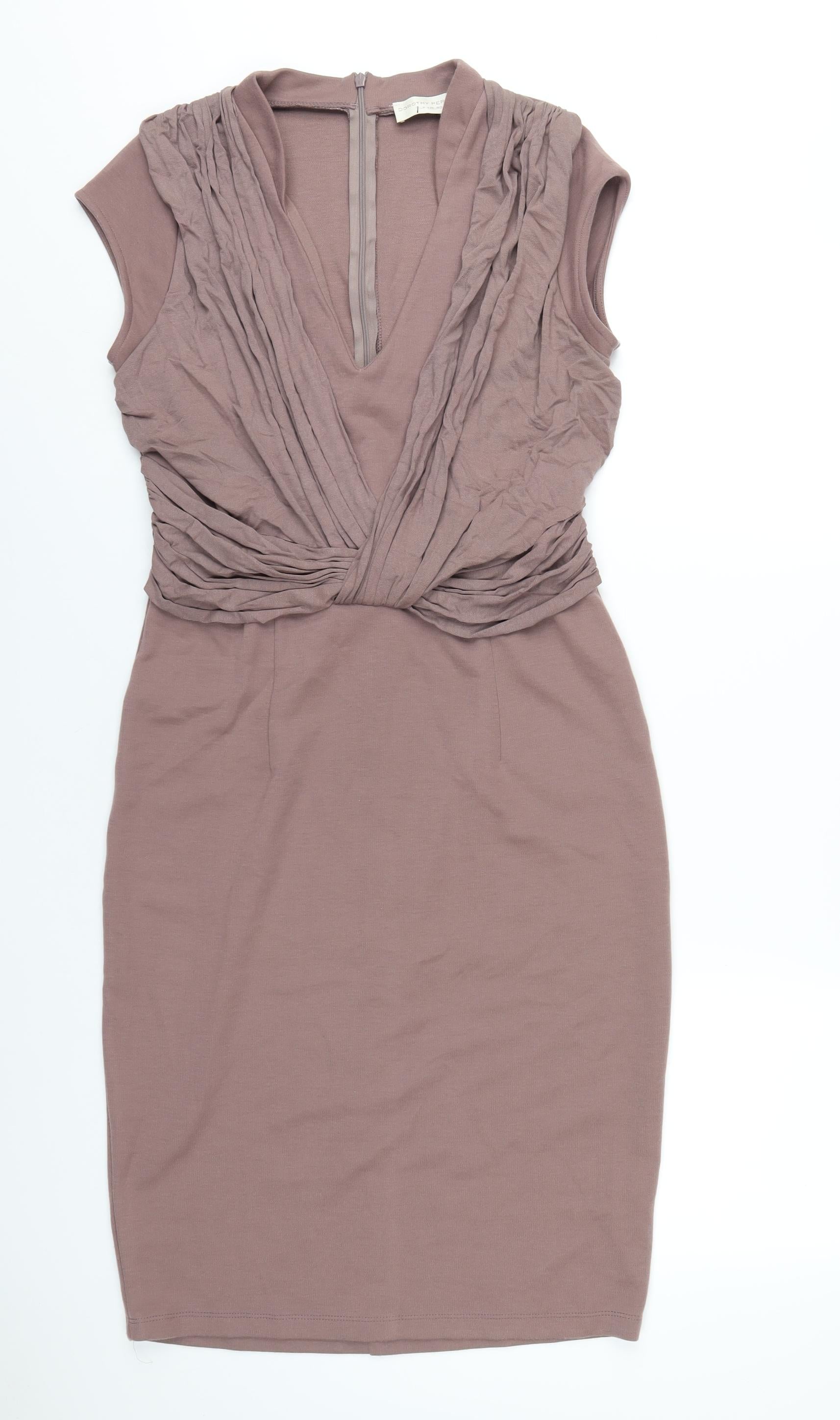 Dorothy Perkins Womens Purple Polyester Bodycon Size 14 V-Neck Zip