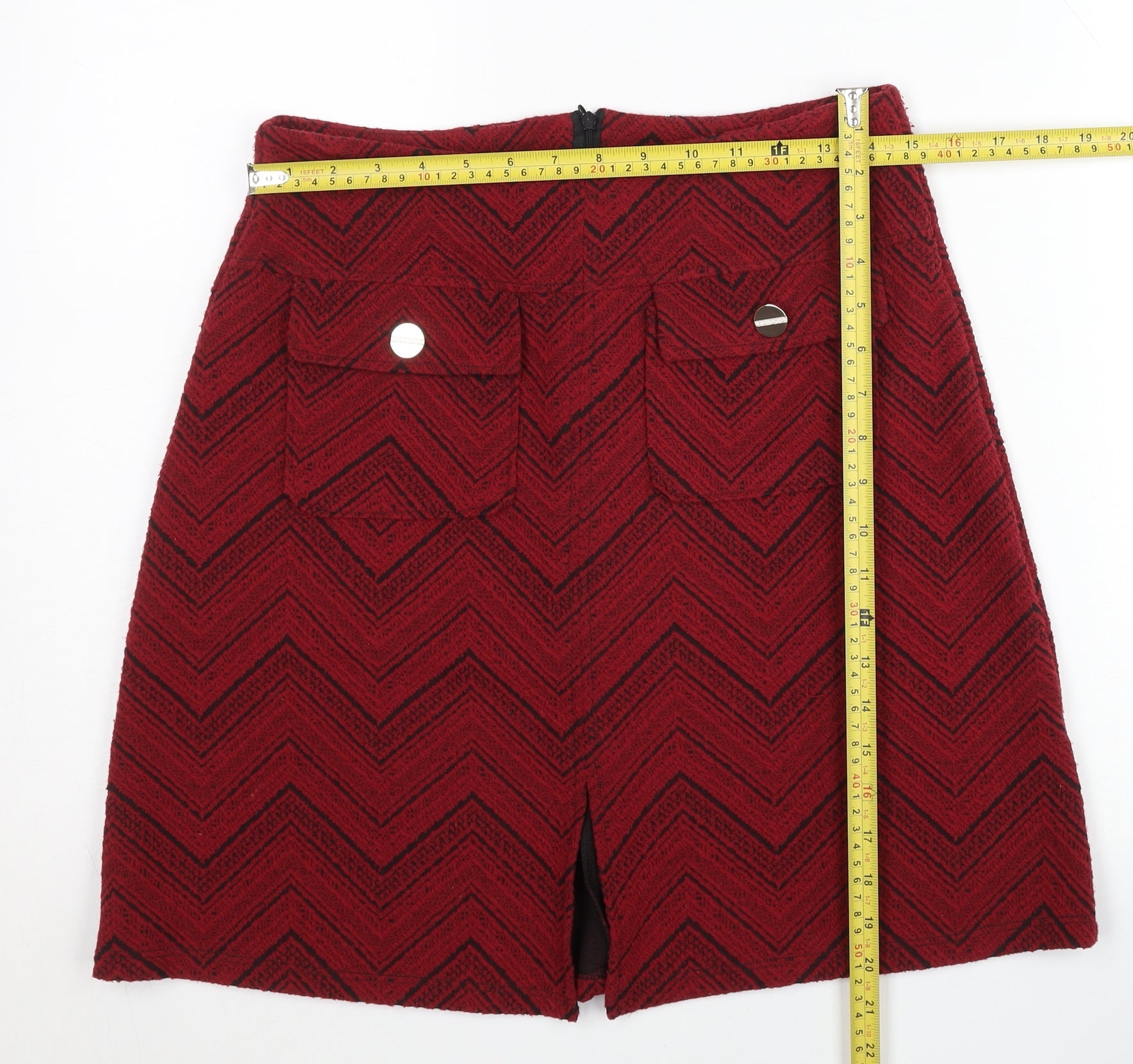 Dorothy Perkins Women's Red A-Line Tweed Mini Skirt Size 10