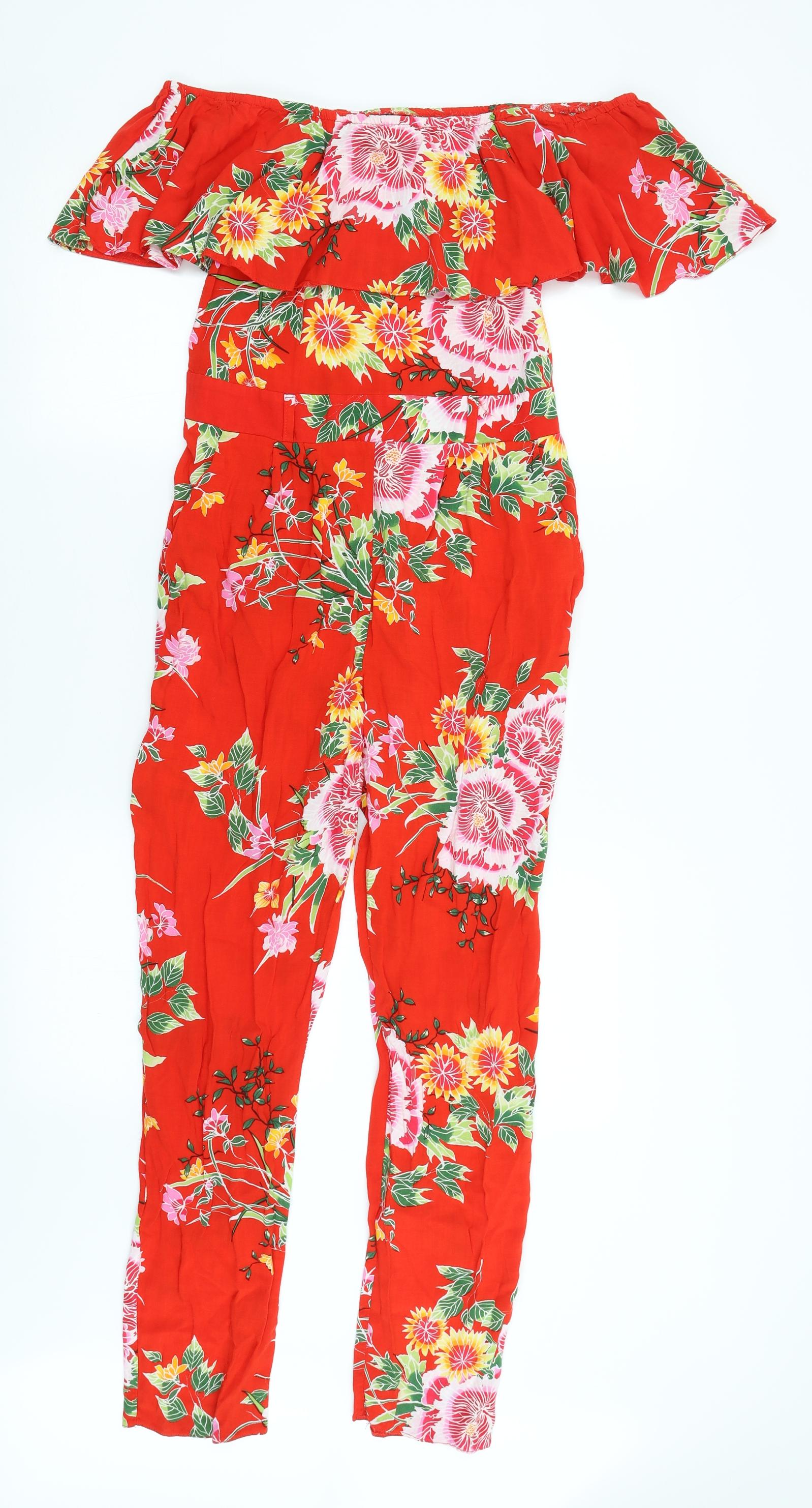 Dorothy Perkins Womens Red Floral Romper One-Piece Size 8 L25 in