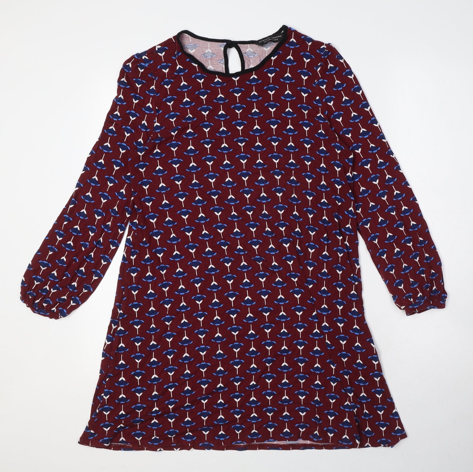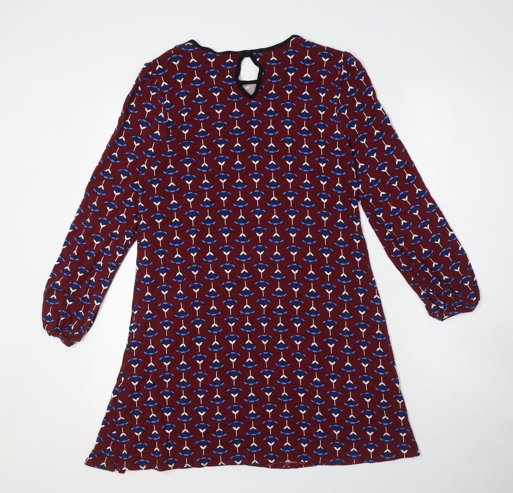 Dorothy Perkins Womens Red Floral Viscose A-Line Size 12 Round Neck Button