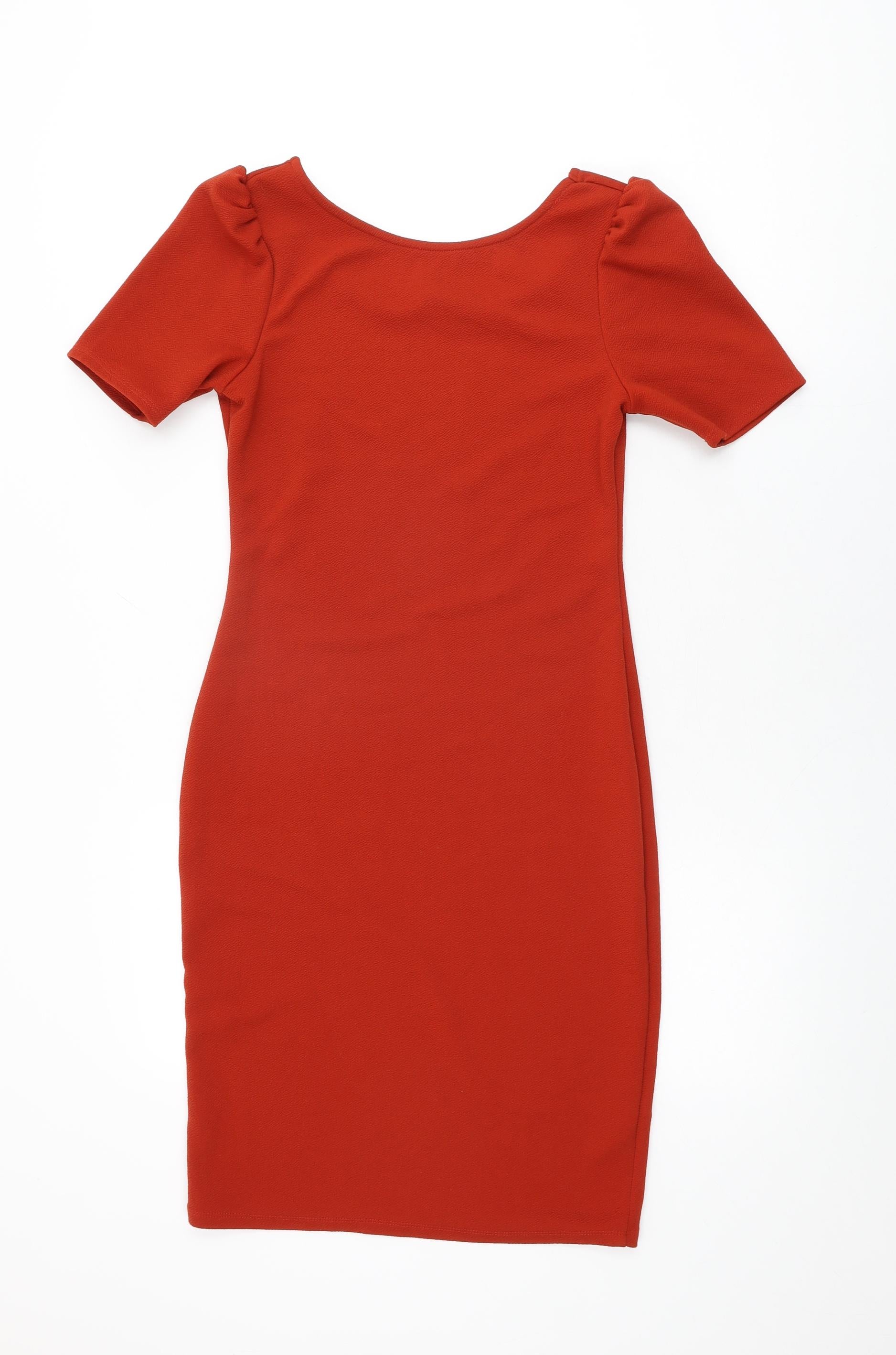 Dorothy Perkins Womens Red Polyester Bodycon Size 10 Round Neck Pullover