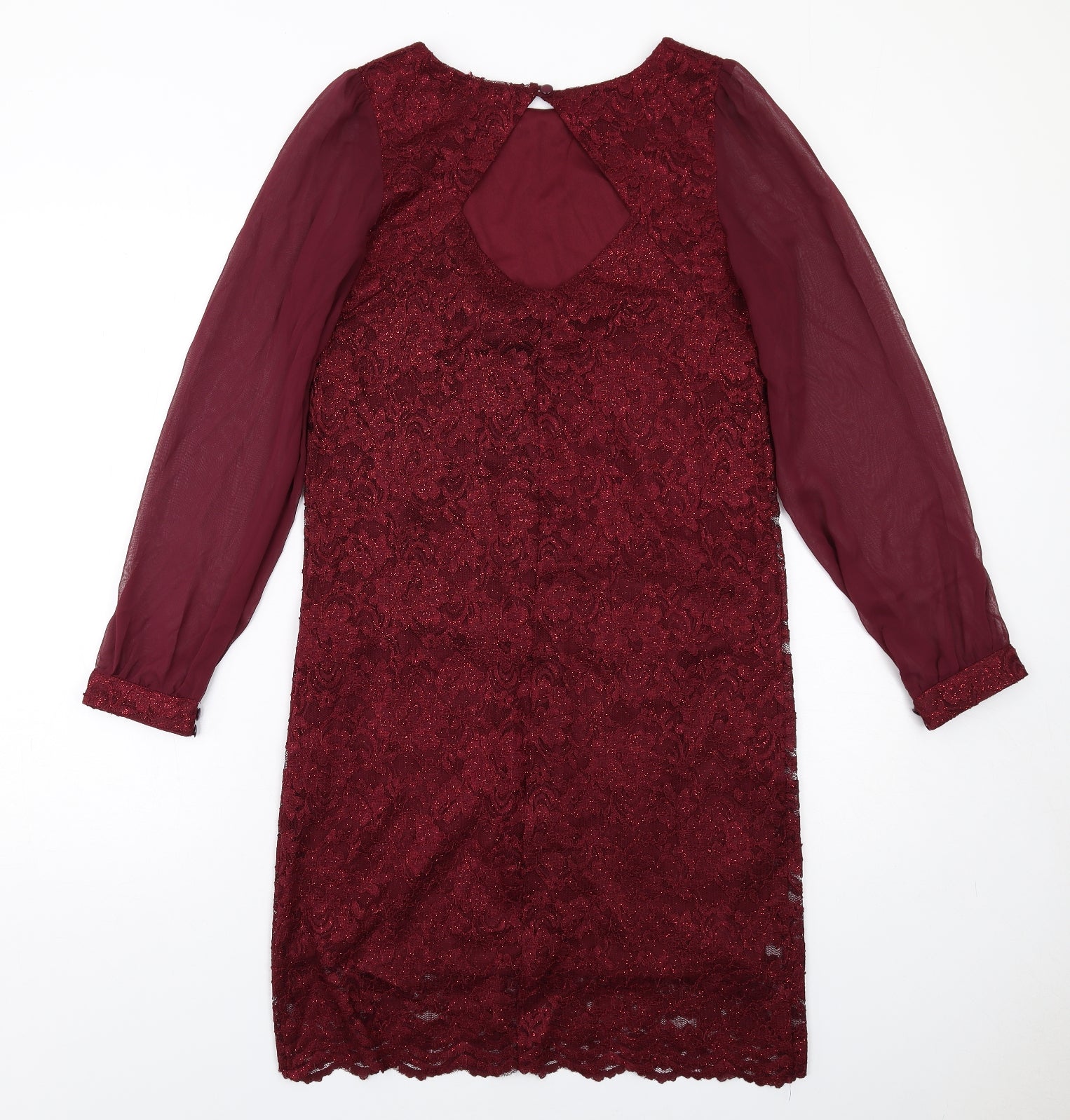 Dorothy Perkins Womens Red Polyester Shift Size 8 Round Neck Button