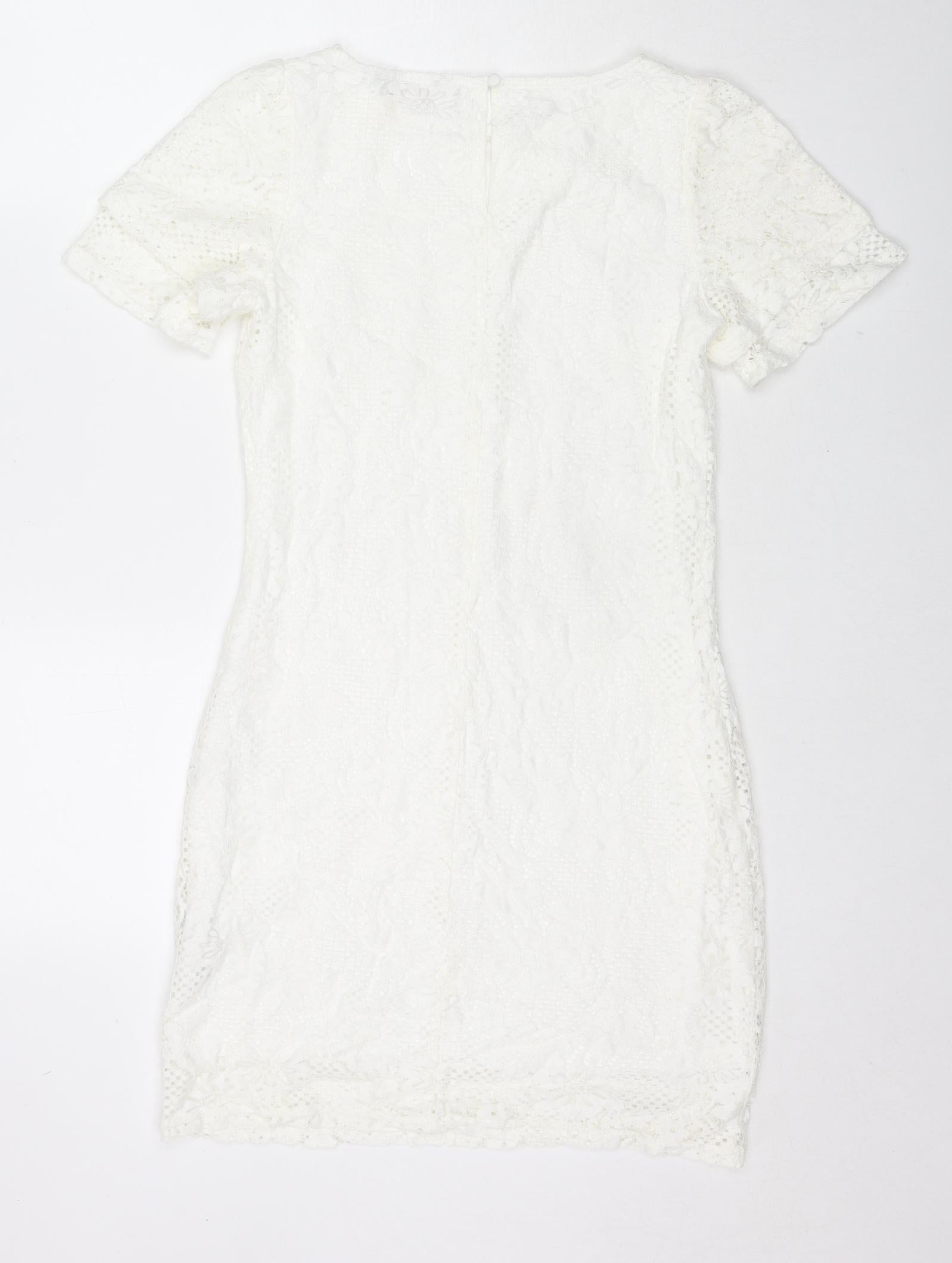 Dorothy Perkins Womens White Floral Cotton A-Line Size 8 Round Neck Button