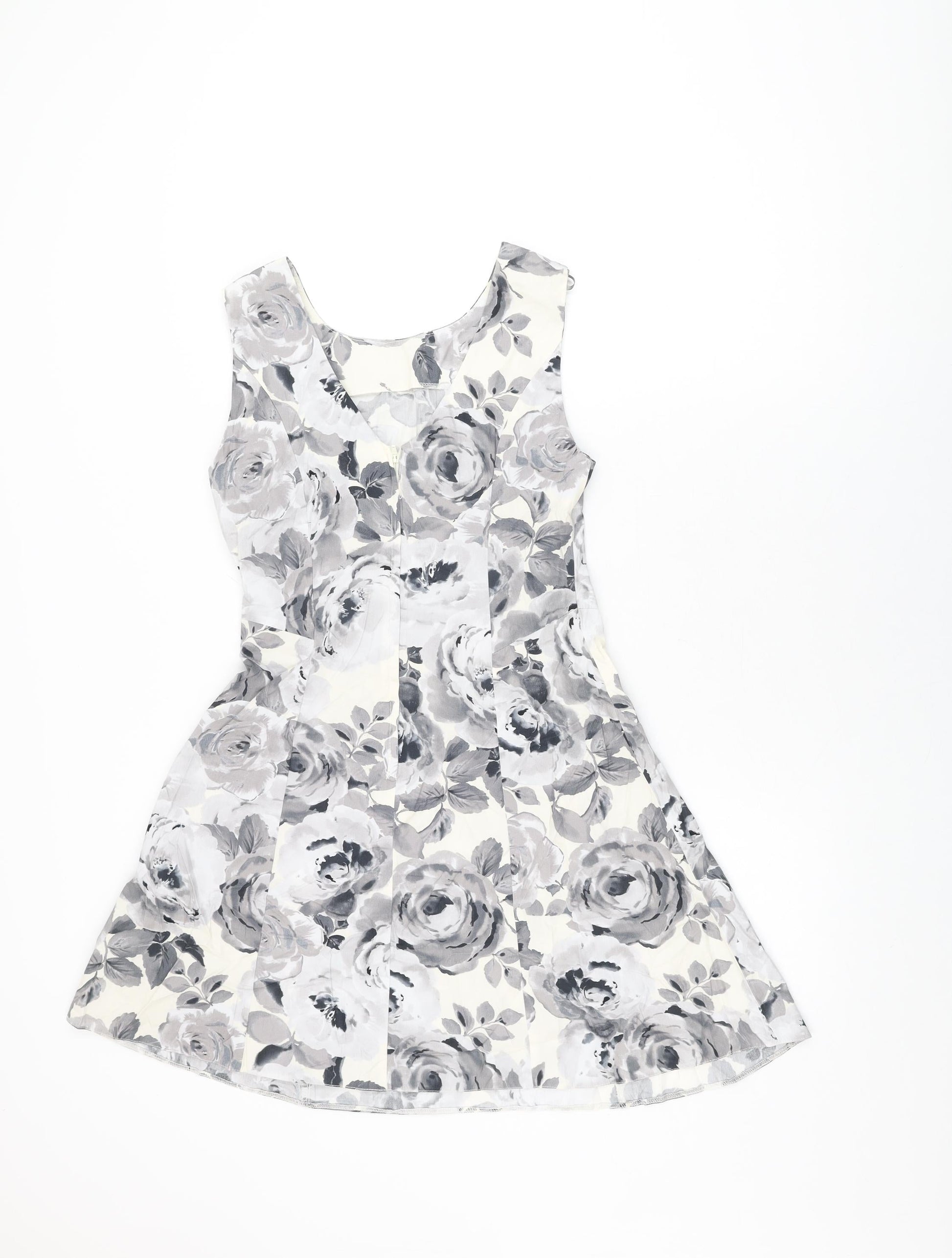 Dorothy Perkins Womens White Floral Cotton A-Line Size 8 Round Neck Zip