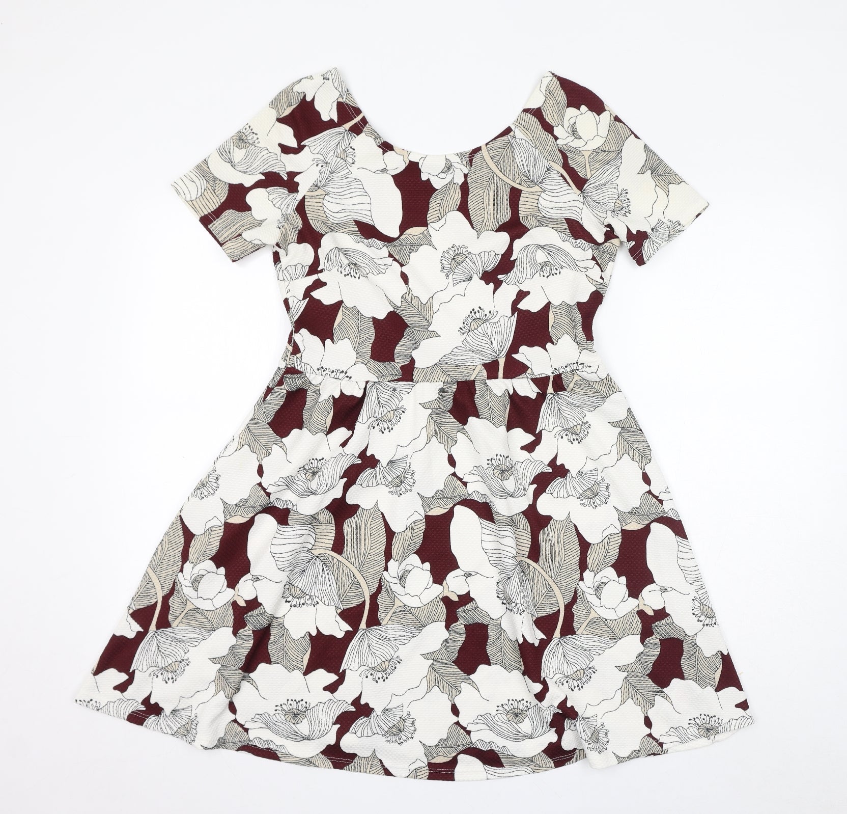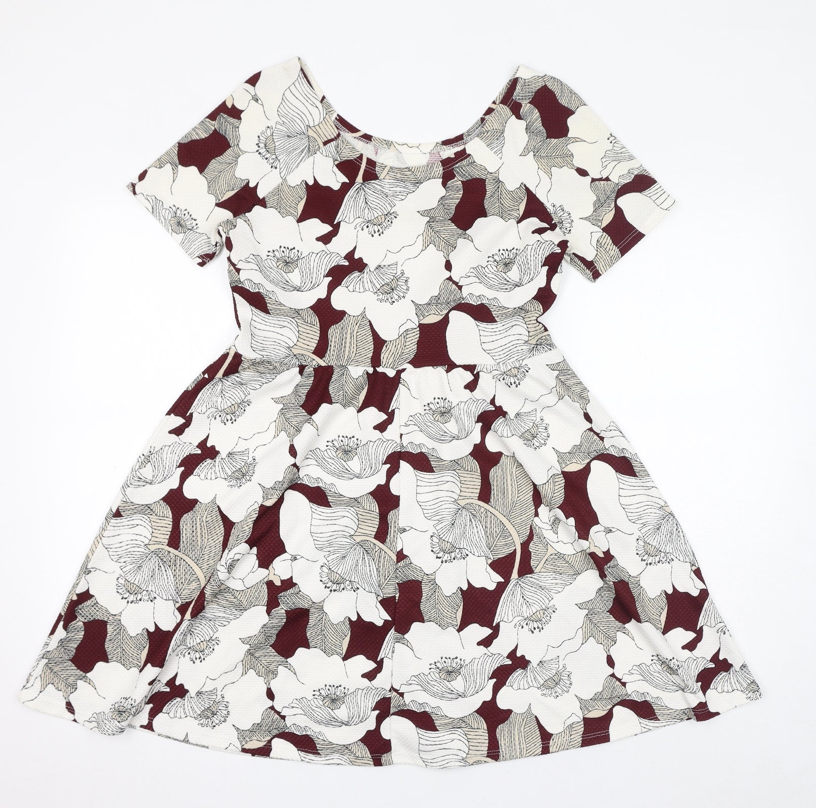 Dorothy Perkins Womens White Floral Polyester Fit & Flare Size 12 Round Neck Pullover