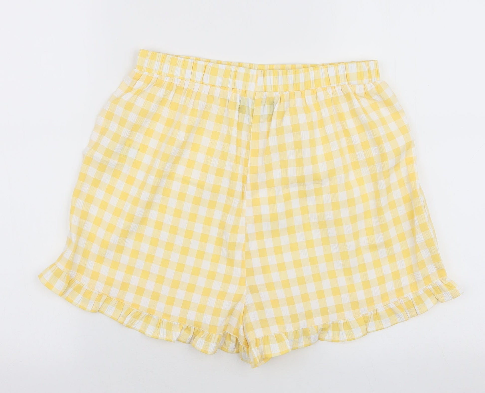 Dorothy Perkins Womens Yellow Check Polyester Sweat Shorts Size S L3 in Regular Pull On