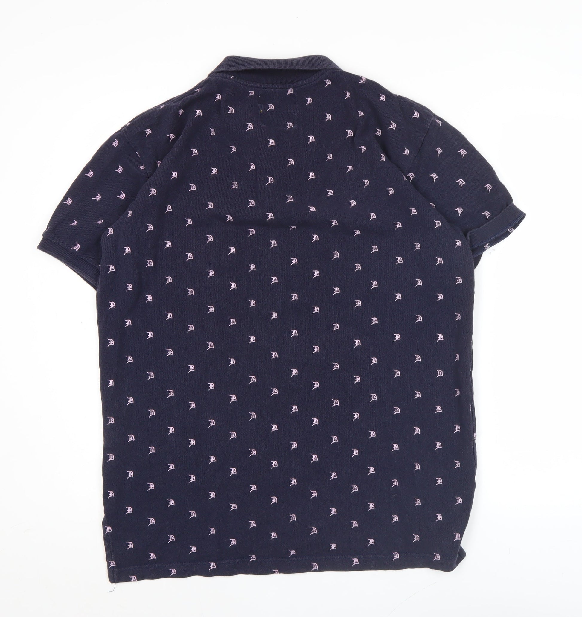 Duffer London Men's Blue Cotton Polo Shirt L Short Sleeve Logo Print