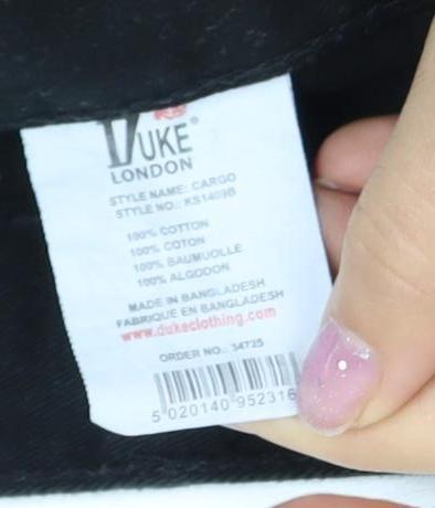 Duke Jeans Men's Black Cargo Jeans Size 52 with Button Closure