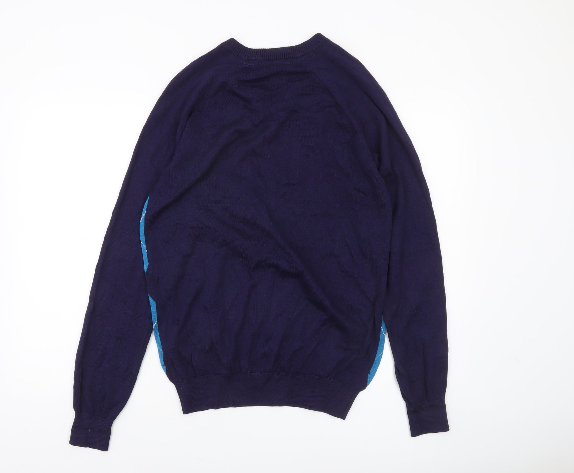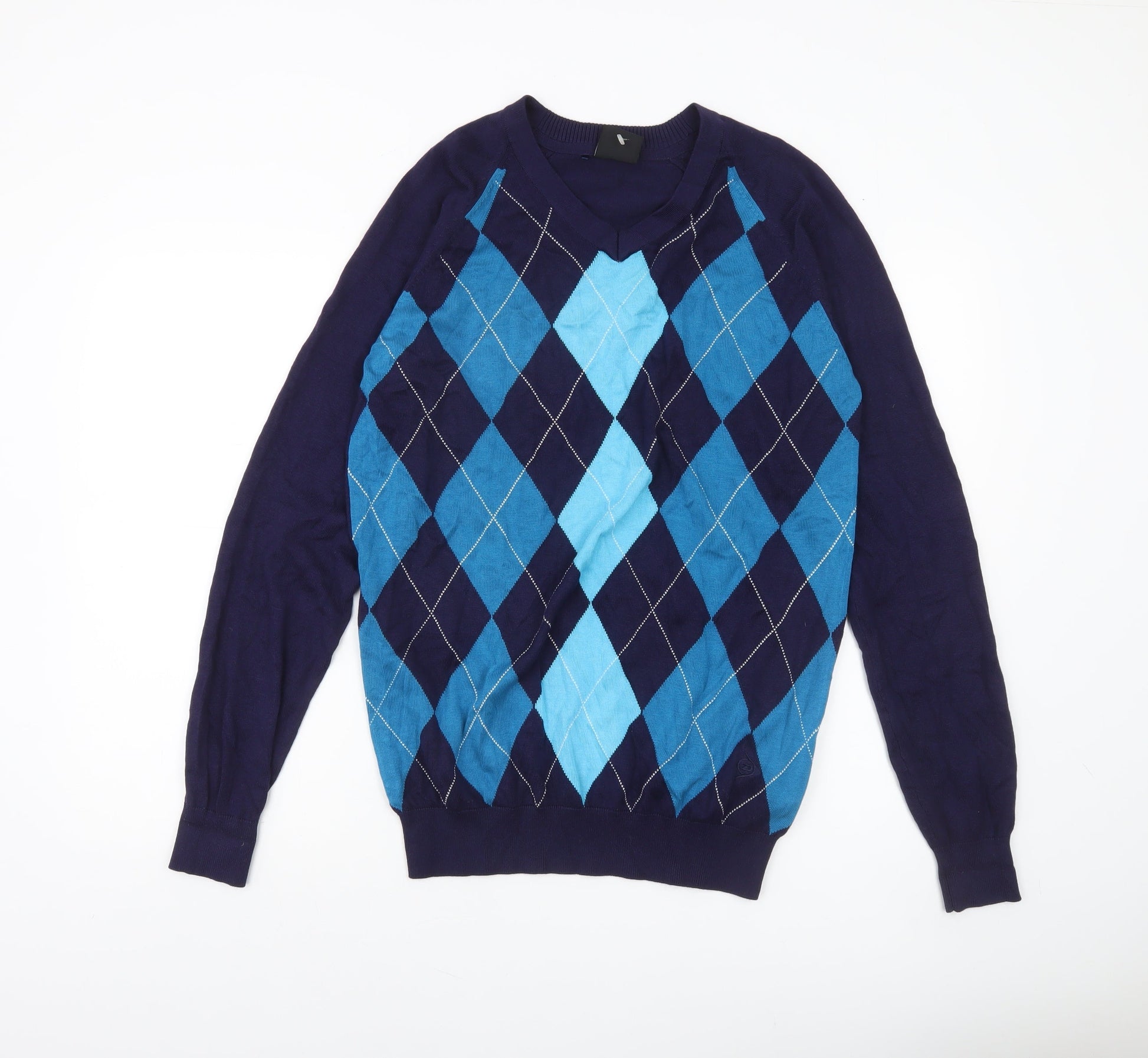 Dunlop Men Blue Argyle V-Neck Pullover Jumper Size M