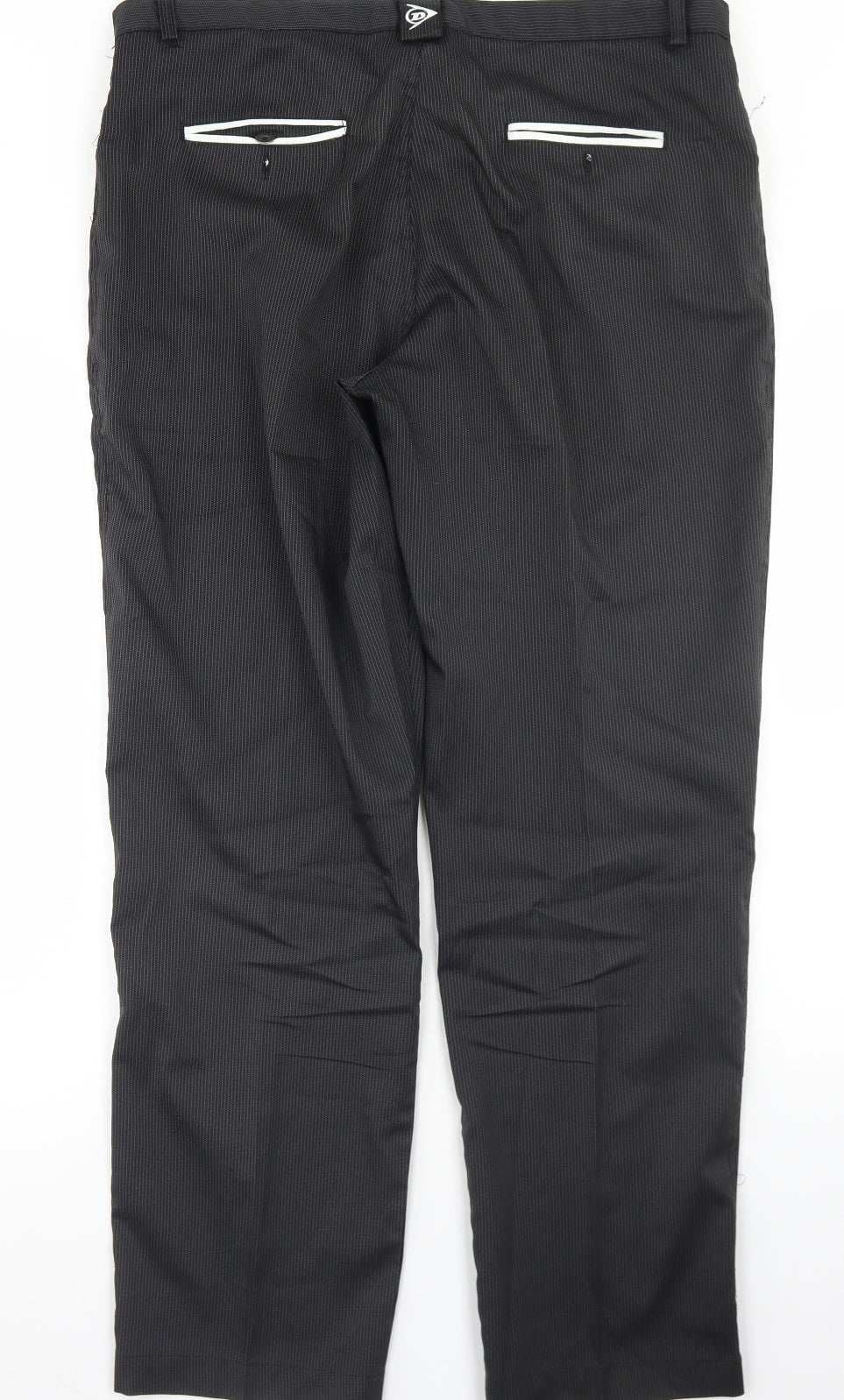 Dunlop Mens Black Striped Polyester Dress Pants Trousers Size 36 in L31 in Regular Button
