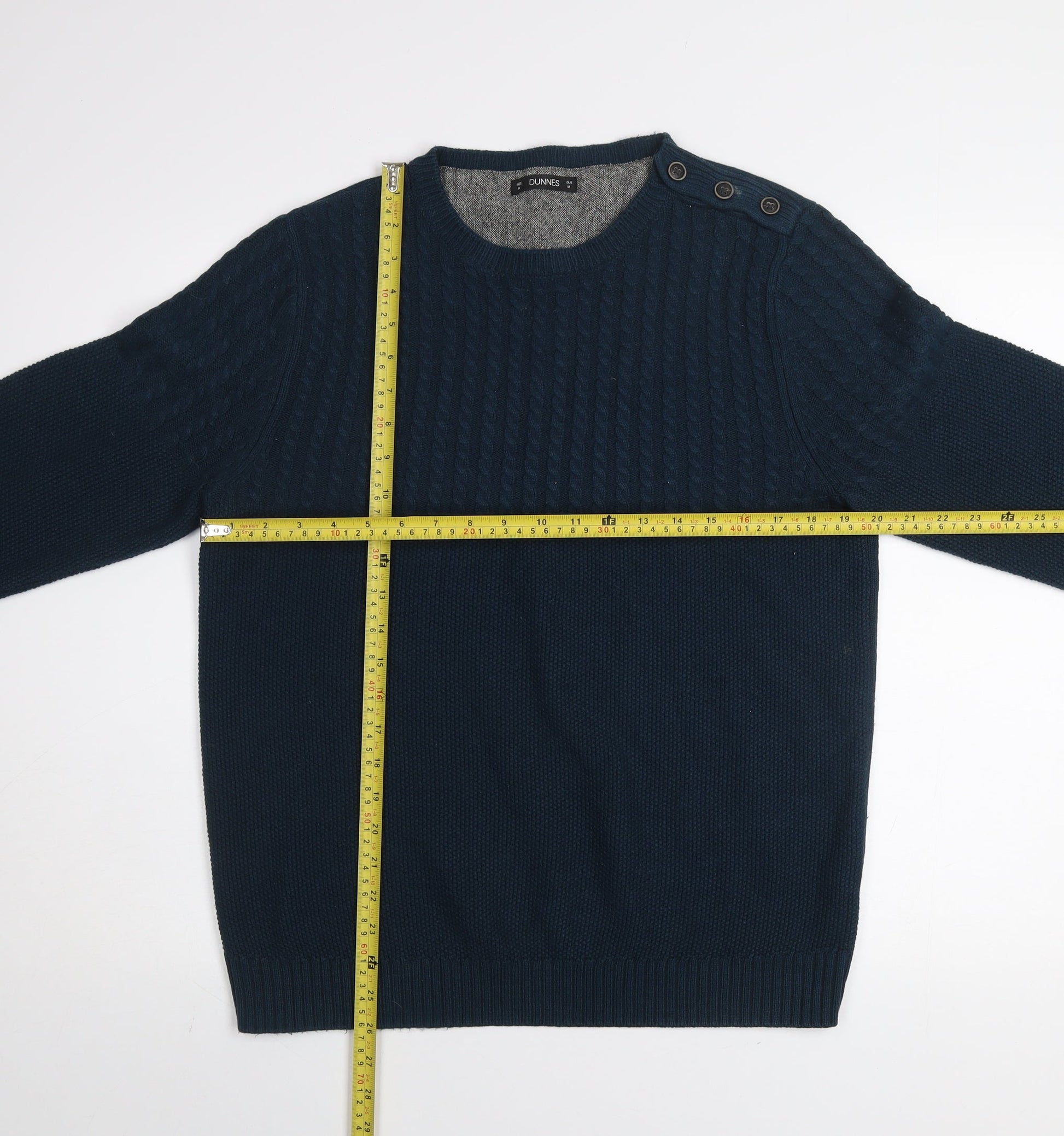 Dunnes Men Blue Cable-Knit Crew Neck Jumper Medium