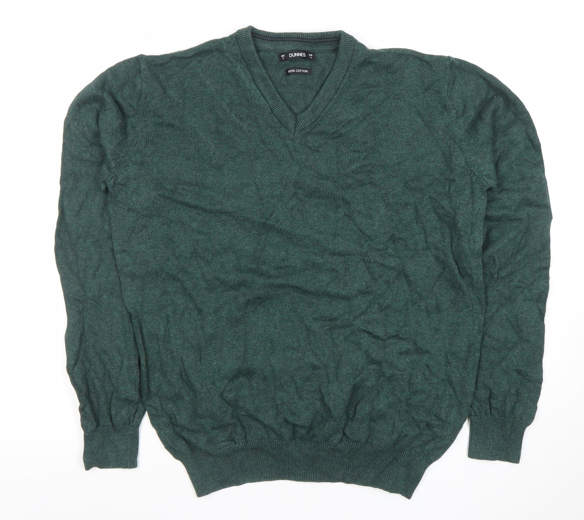 Dunnes Men Green Cotton V-Neck Jumper Size S Regular Fit