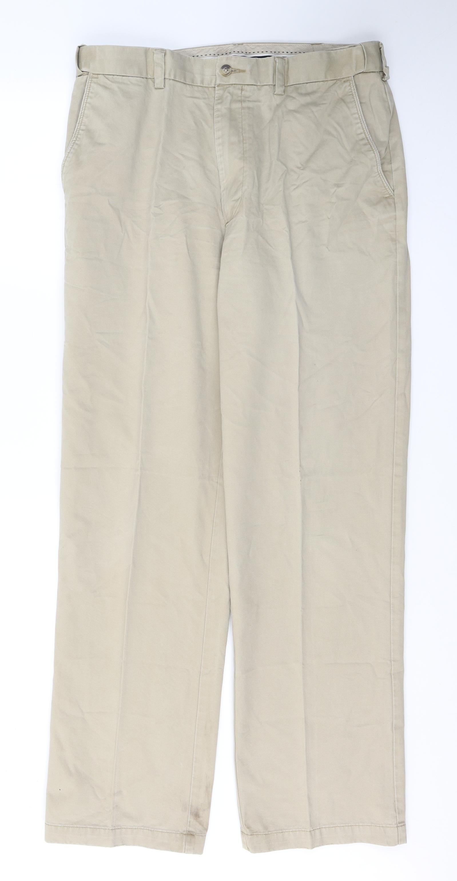 Dunnes Stores Mens Beige Cotton Trousers Size XL L33 in Regular Button