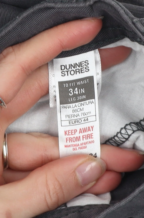 Dunnes Stores Men's Grey Chino Trousers Size 34R Stretch Cotton
