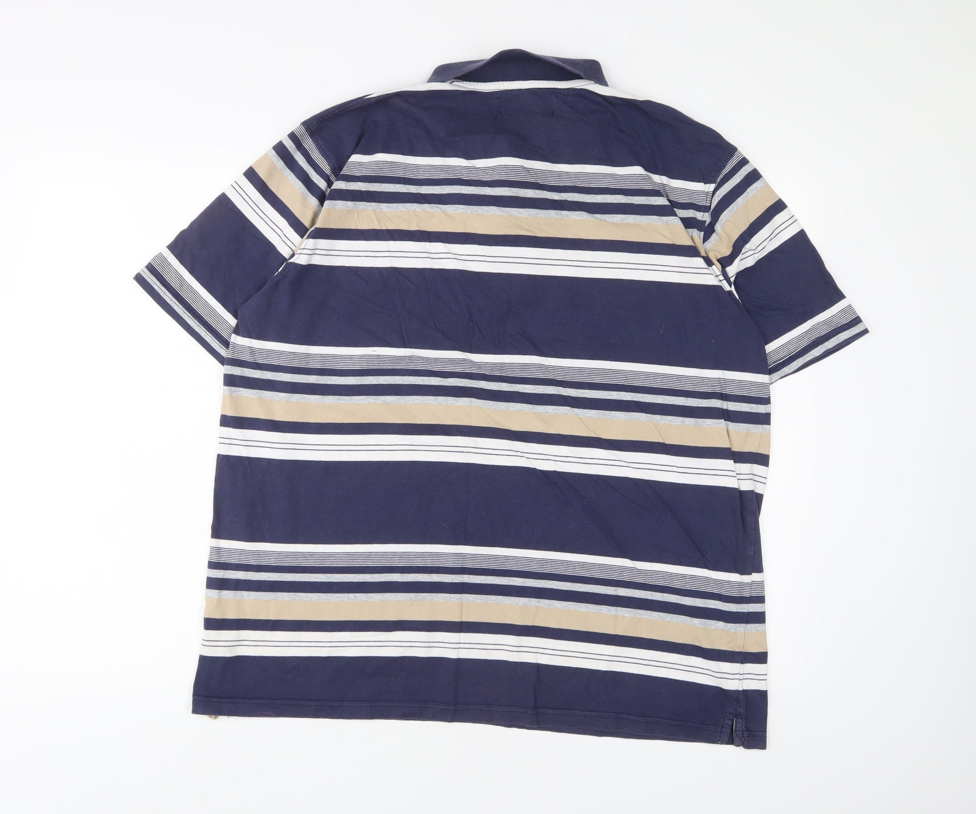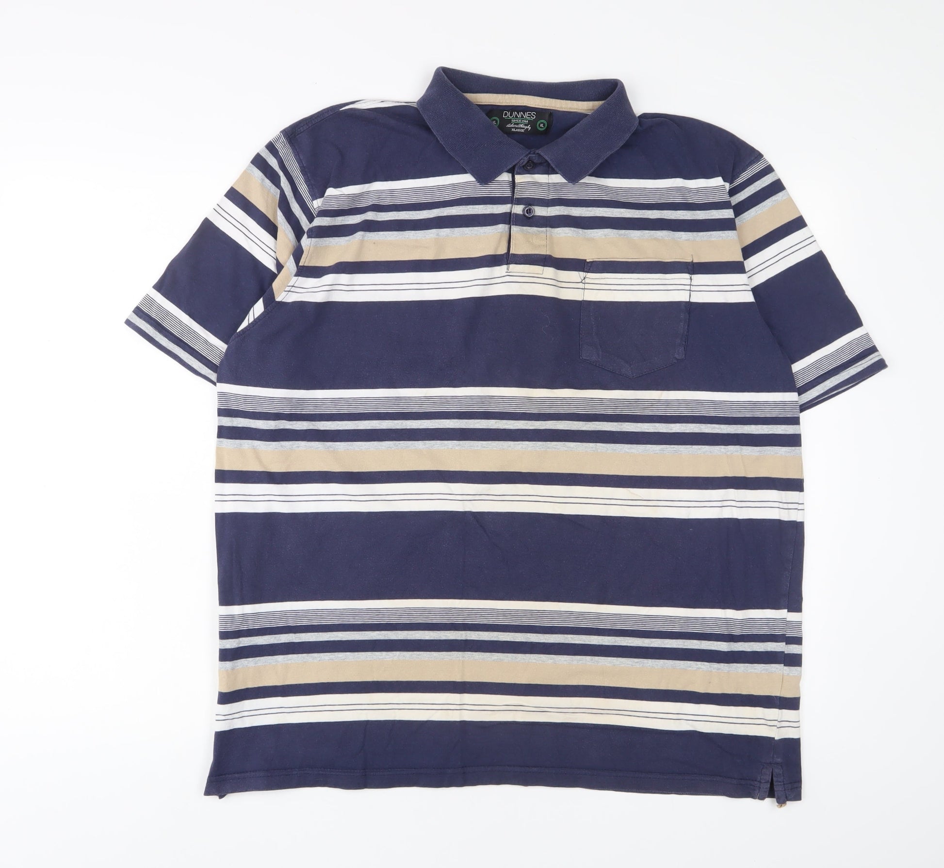 Dunnes Stores Mens Multicoloured Striped Cotton Polo Size XL Collared Button