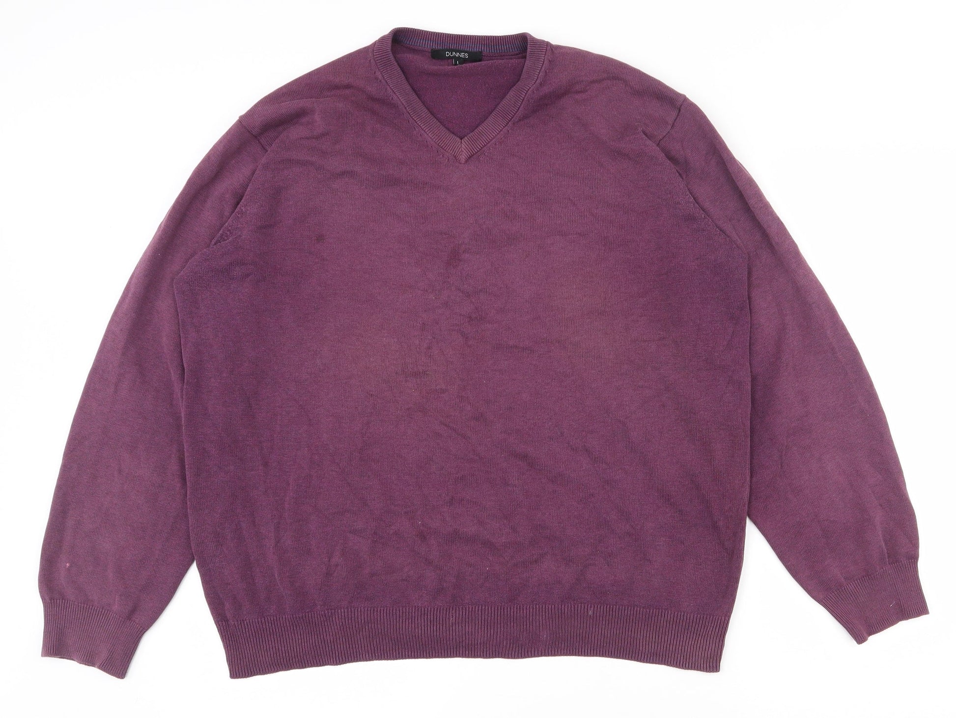 Dunnes Stores Mens Purple V-Neck Cotton Pullover Jumper Size L