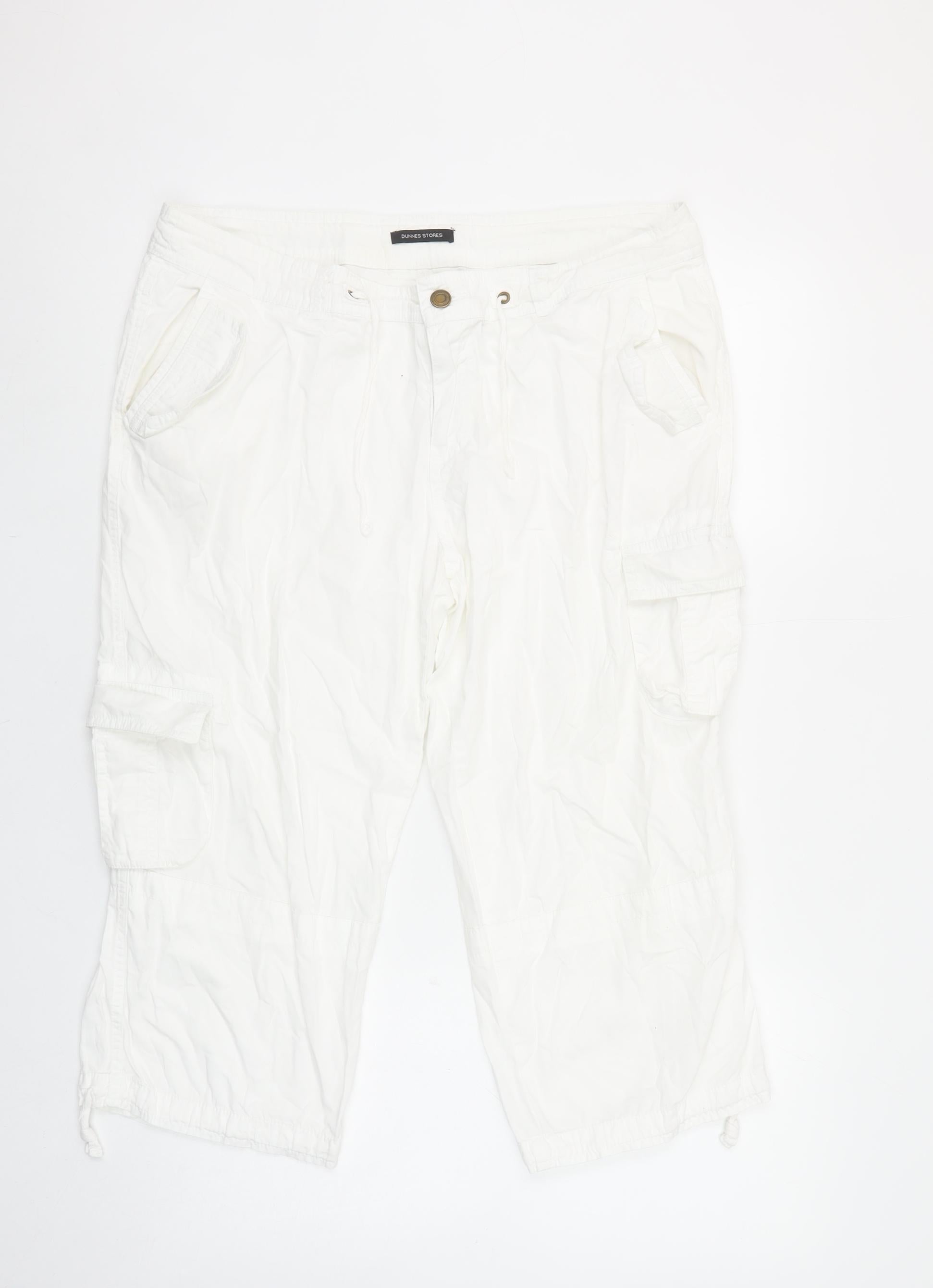 Dunnes Stores Women White Size 14 Cargo Cropped Trousers 100% Cotton