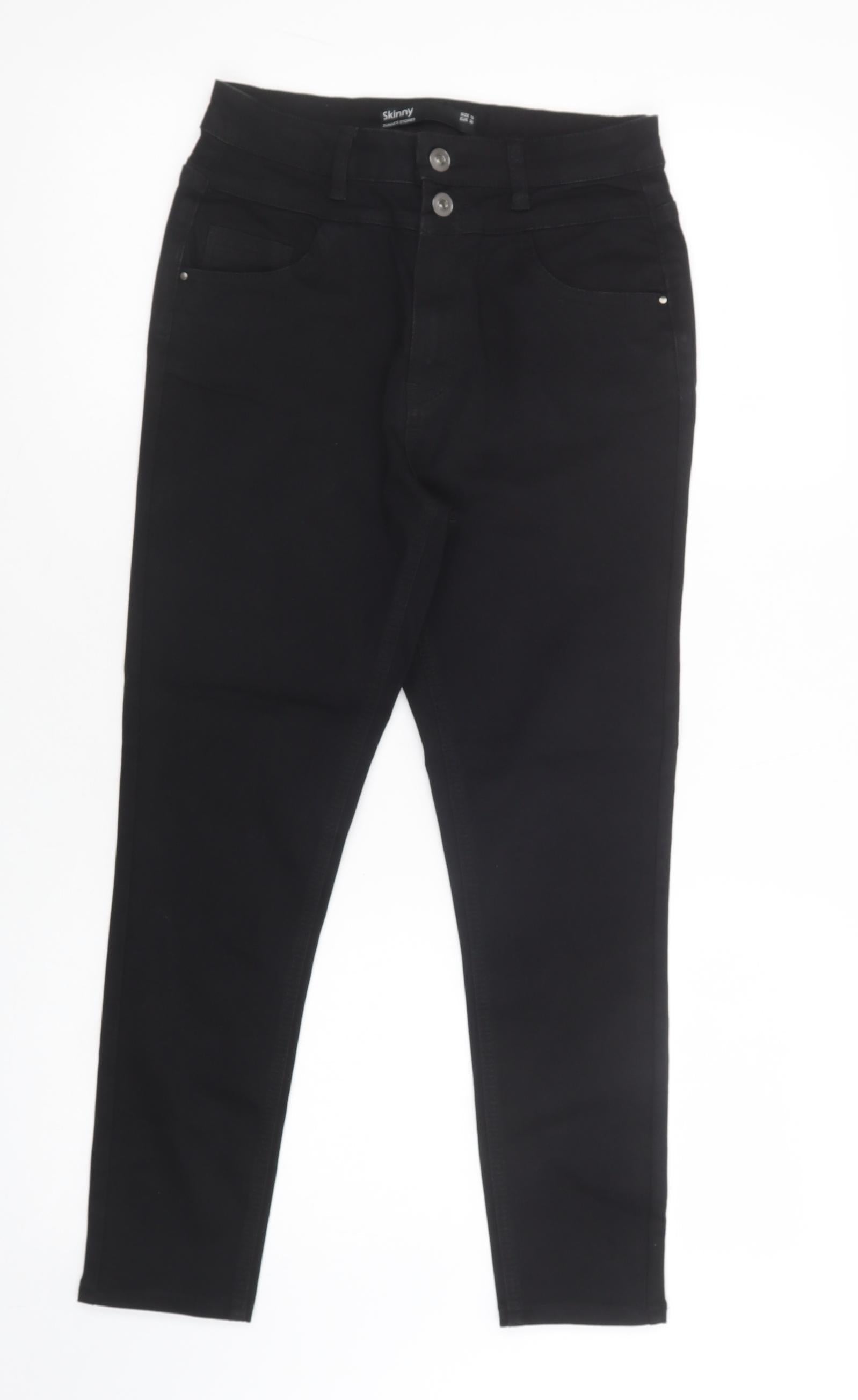 Dunnes Stores Womens Black Cotton Skinny Jeans Size 10 L26 in Regular Button
