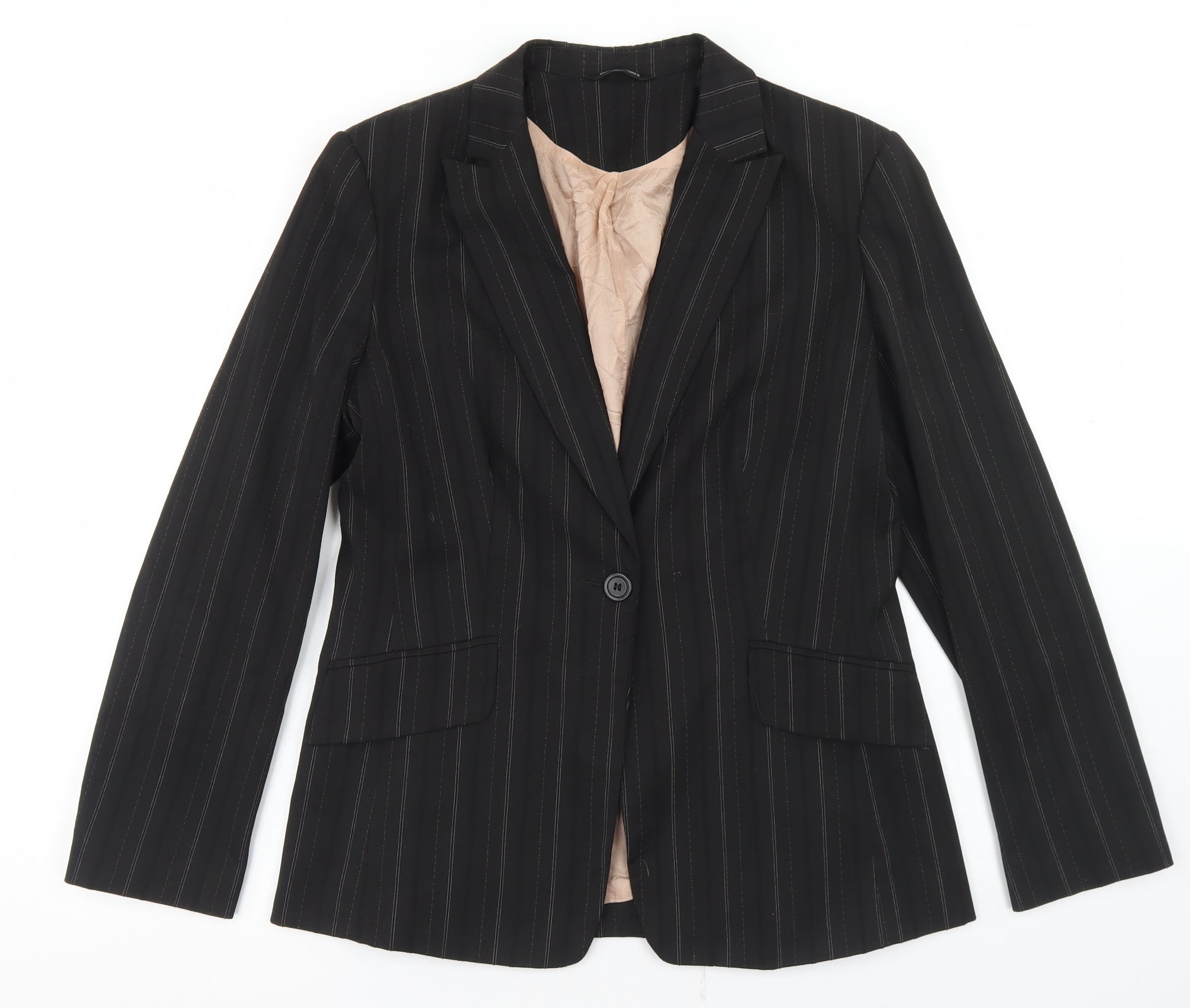 Dunnes Stores Womens Black Striped Polyester Jacket Blazer Size 14