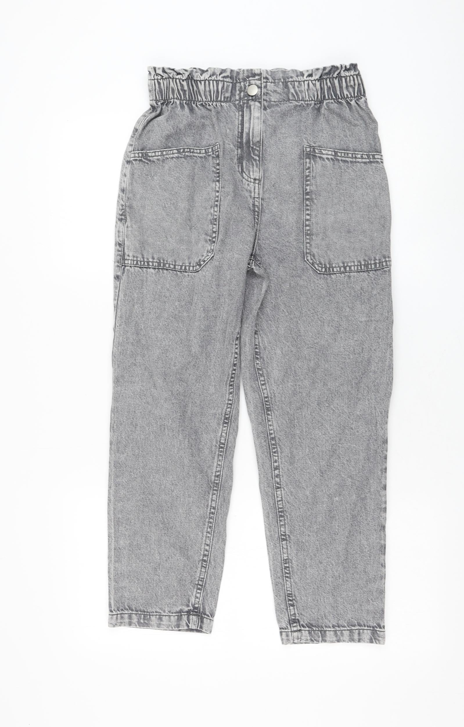 Dunnes Stores Womens Grey Cotton Straight Jeans Size 26 in L23 in Regular Zip