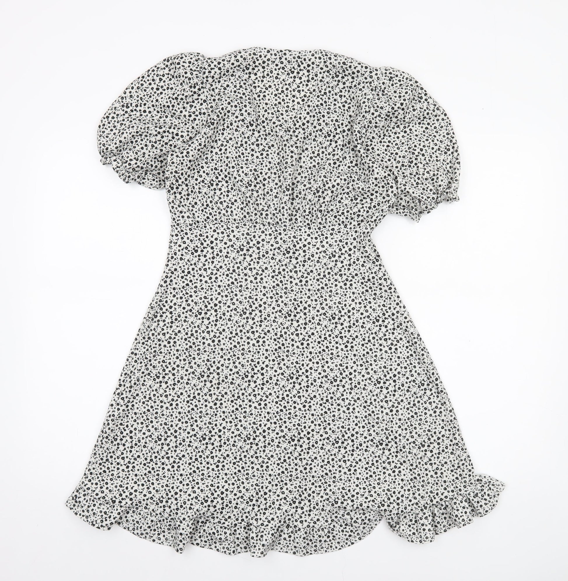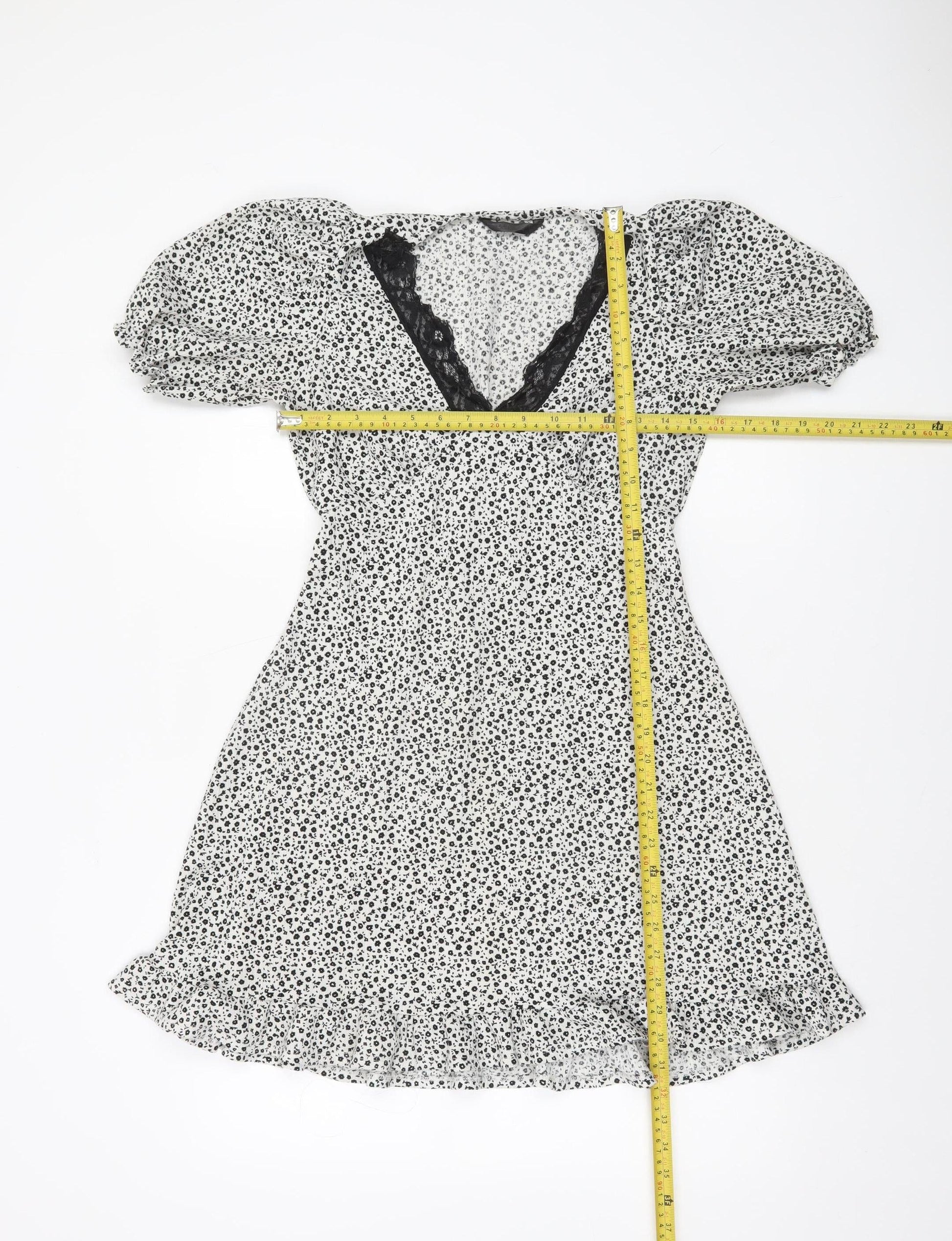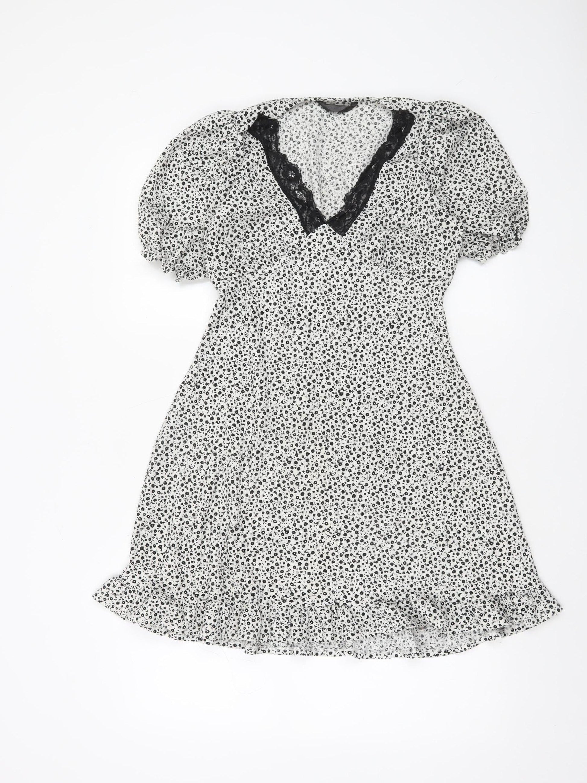 Dunnes Stores Womens White Floral Lace V-Neck Short A-Line Dress Size 10
