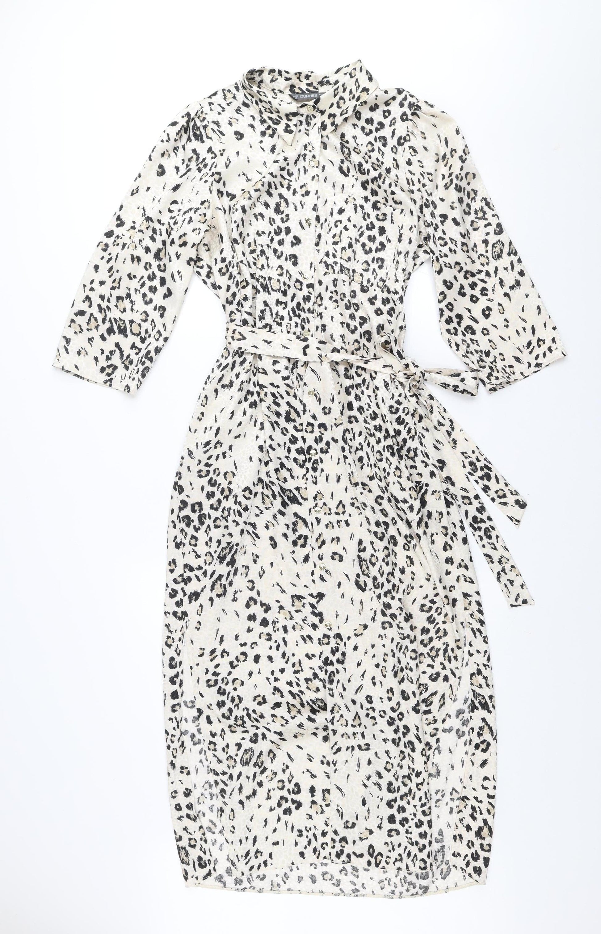 Dunnes Women Beige Leopard Print Midi Shirt Dress Size 14