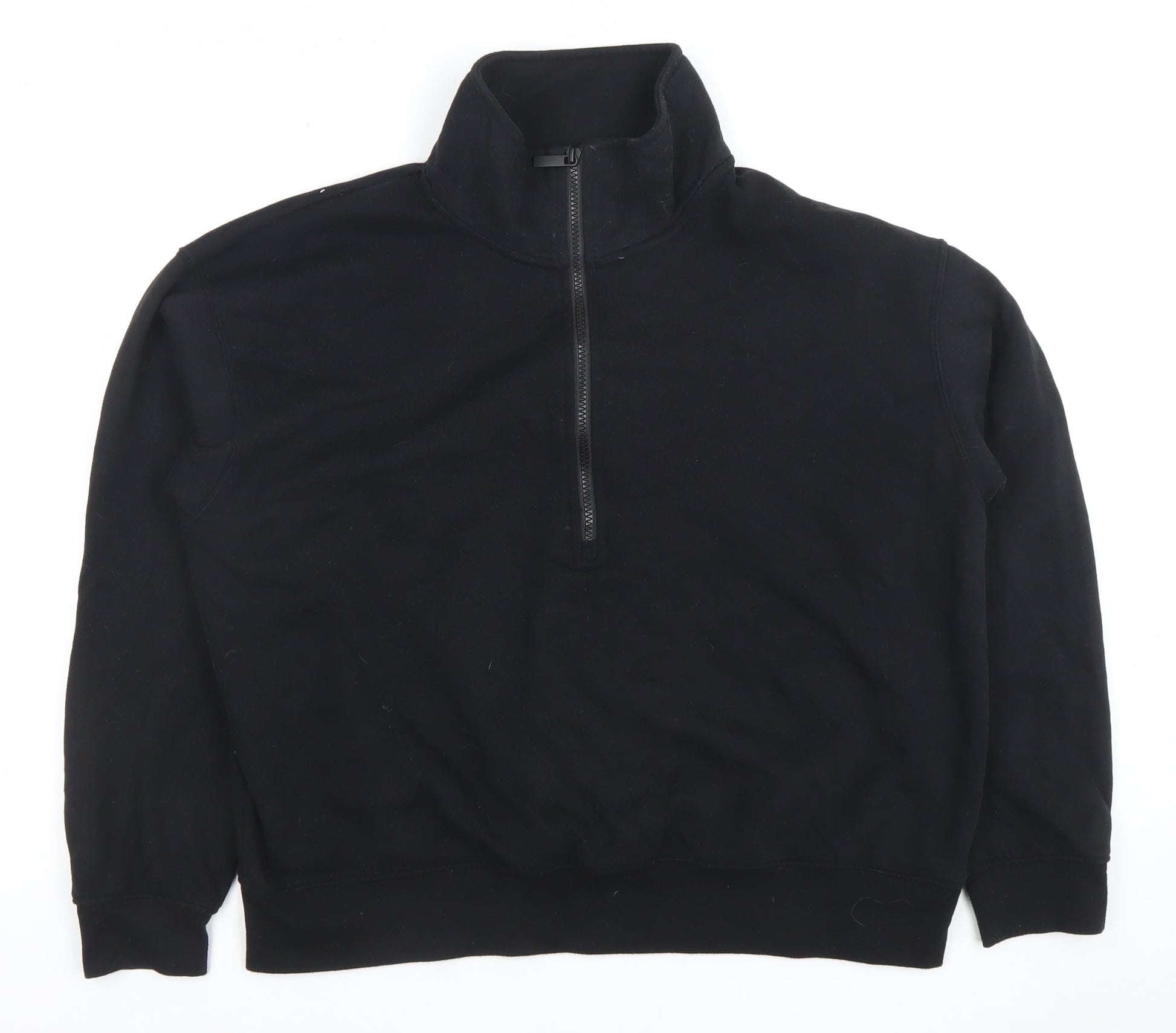 Dunnes Women Black 1/2 Zip Pullover Sweatshirt Size L Cotton Blend