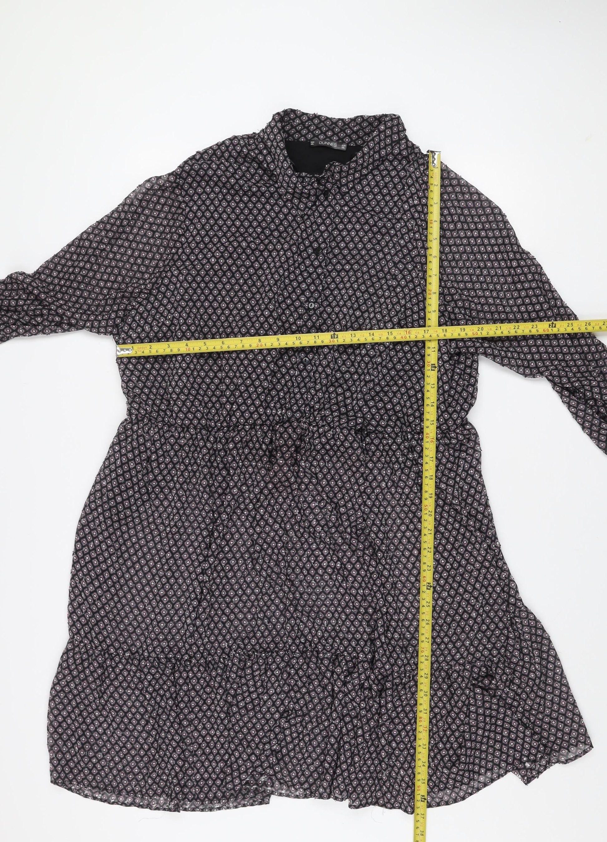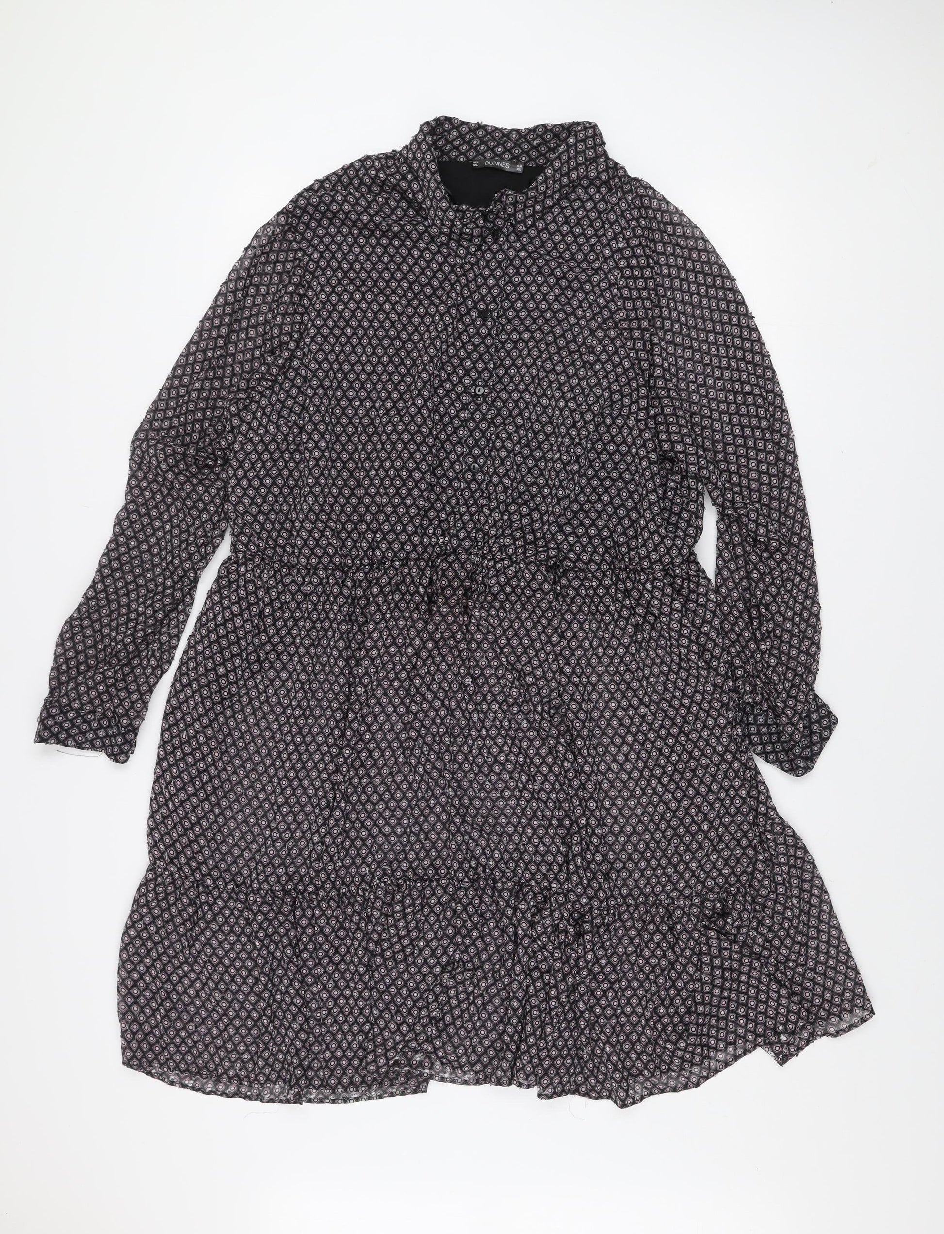 Dunnes Women Black Geometric Shift Dress 2XL Knee Length Long Sleeve