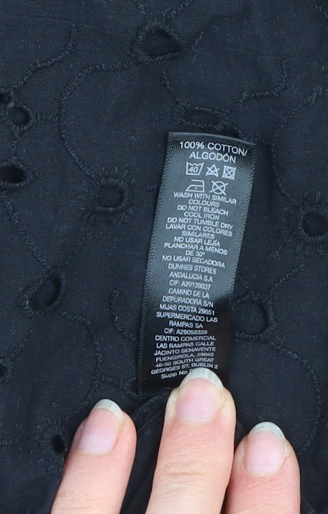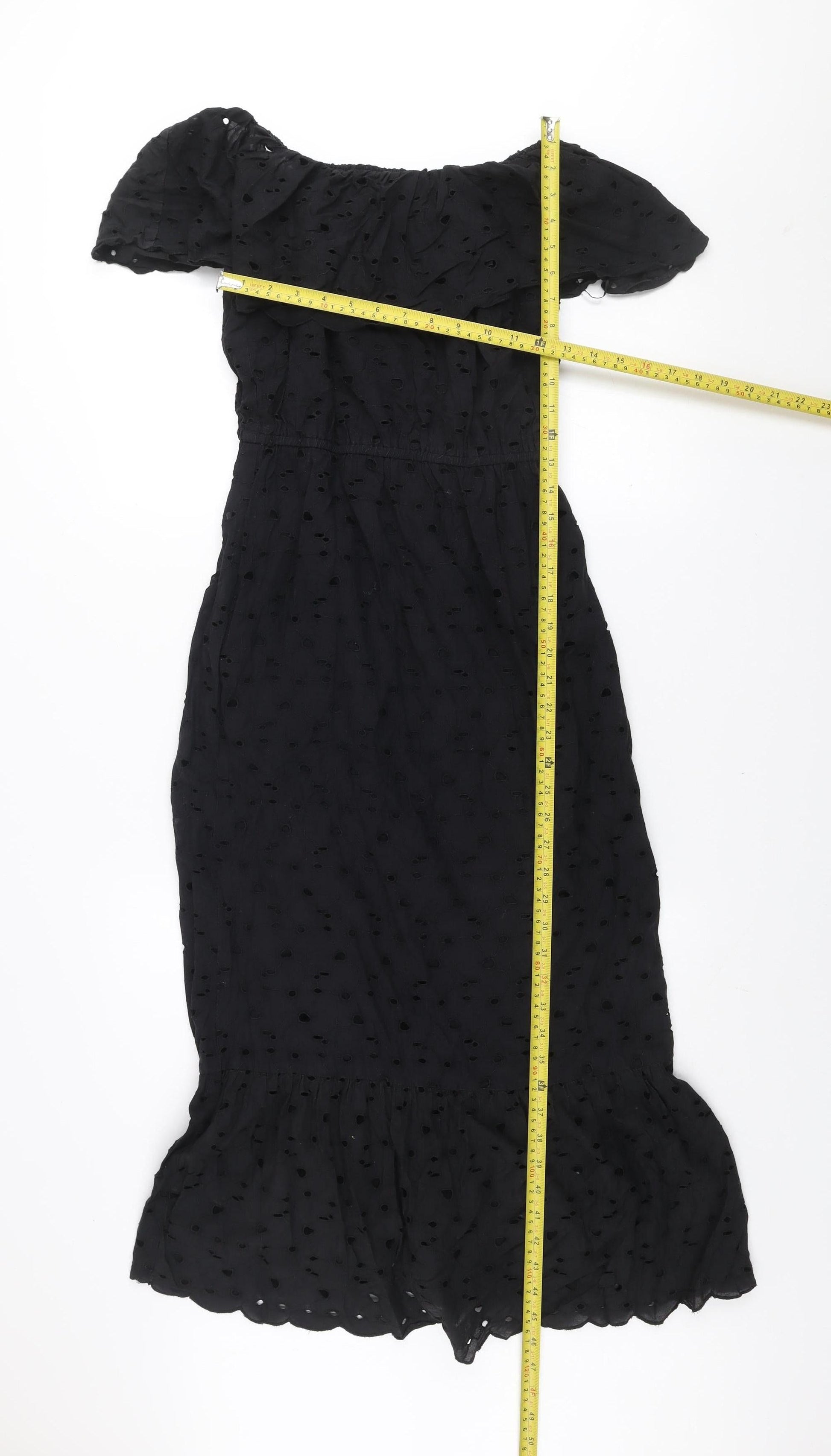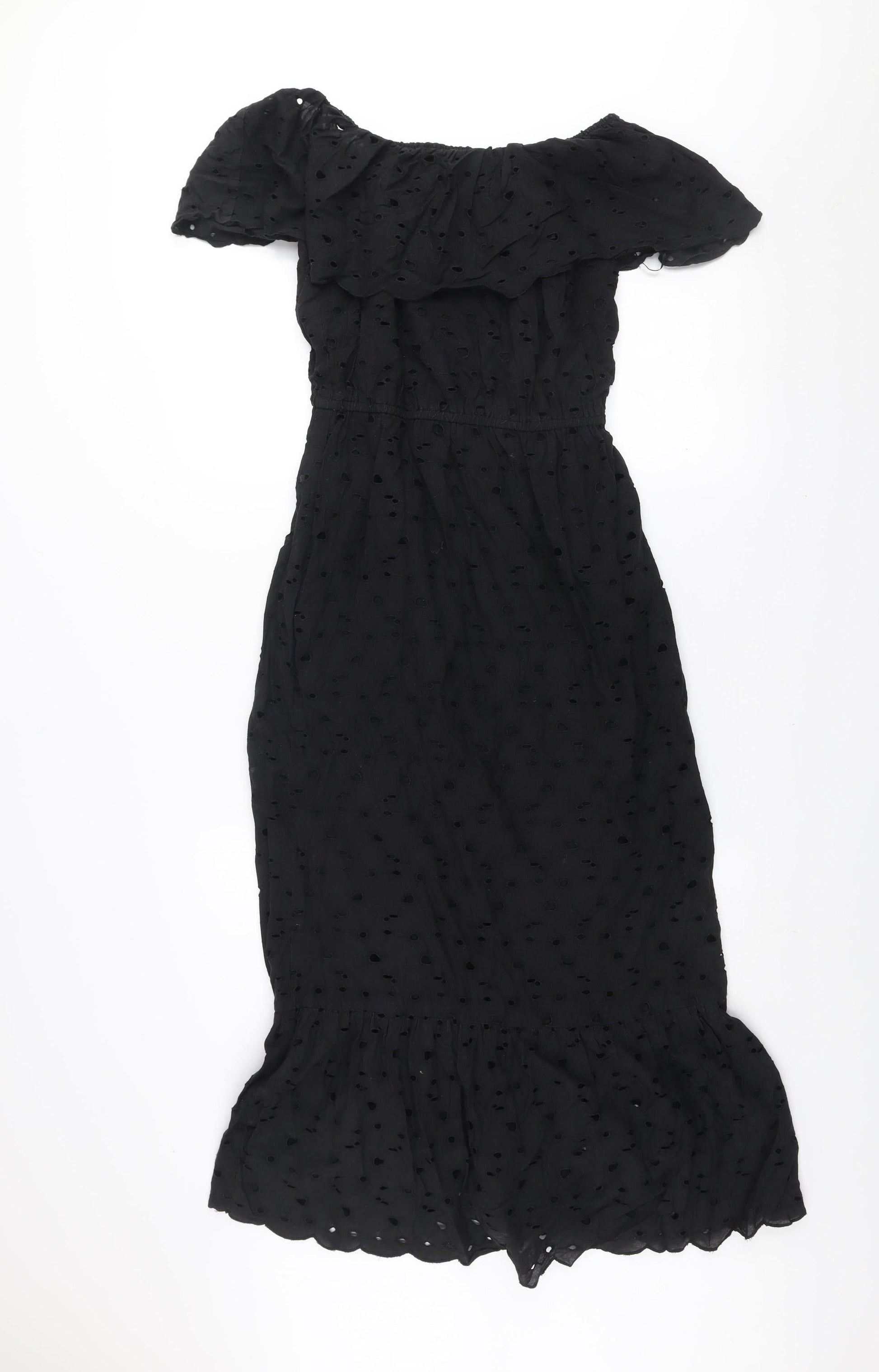 Dunnes Women Black Size 8 Off Shoulder Ruffle Midi Cotton Dress