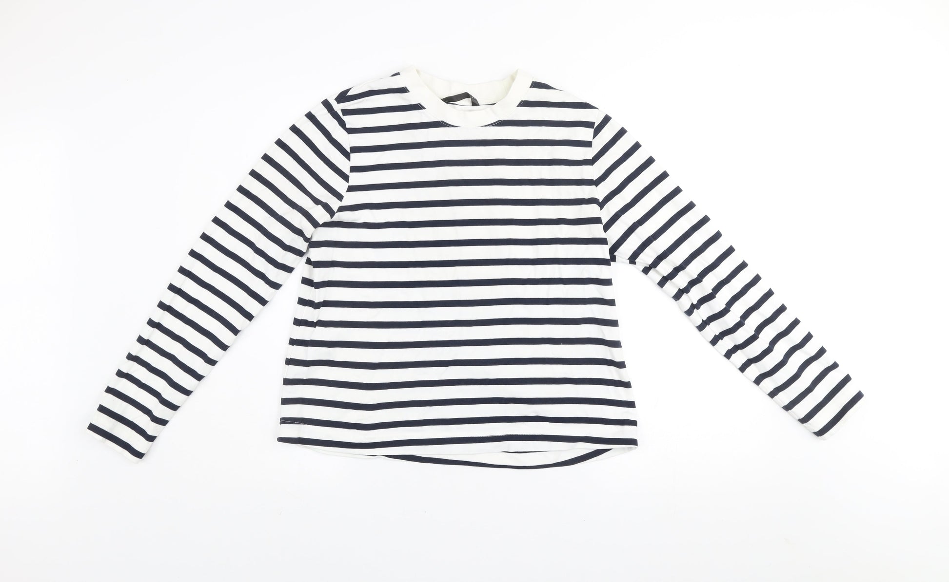 Dunnes Women Navy White Striped Cotton Pullover Sweatshirt M