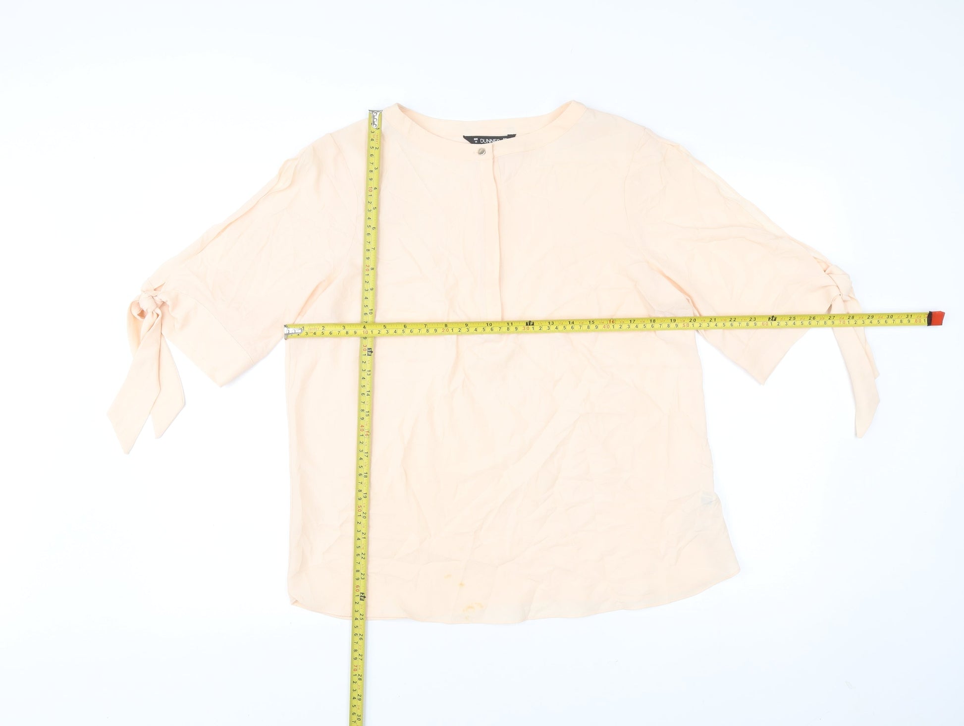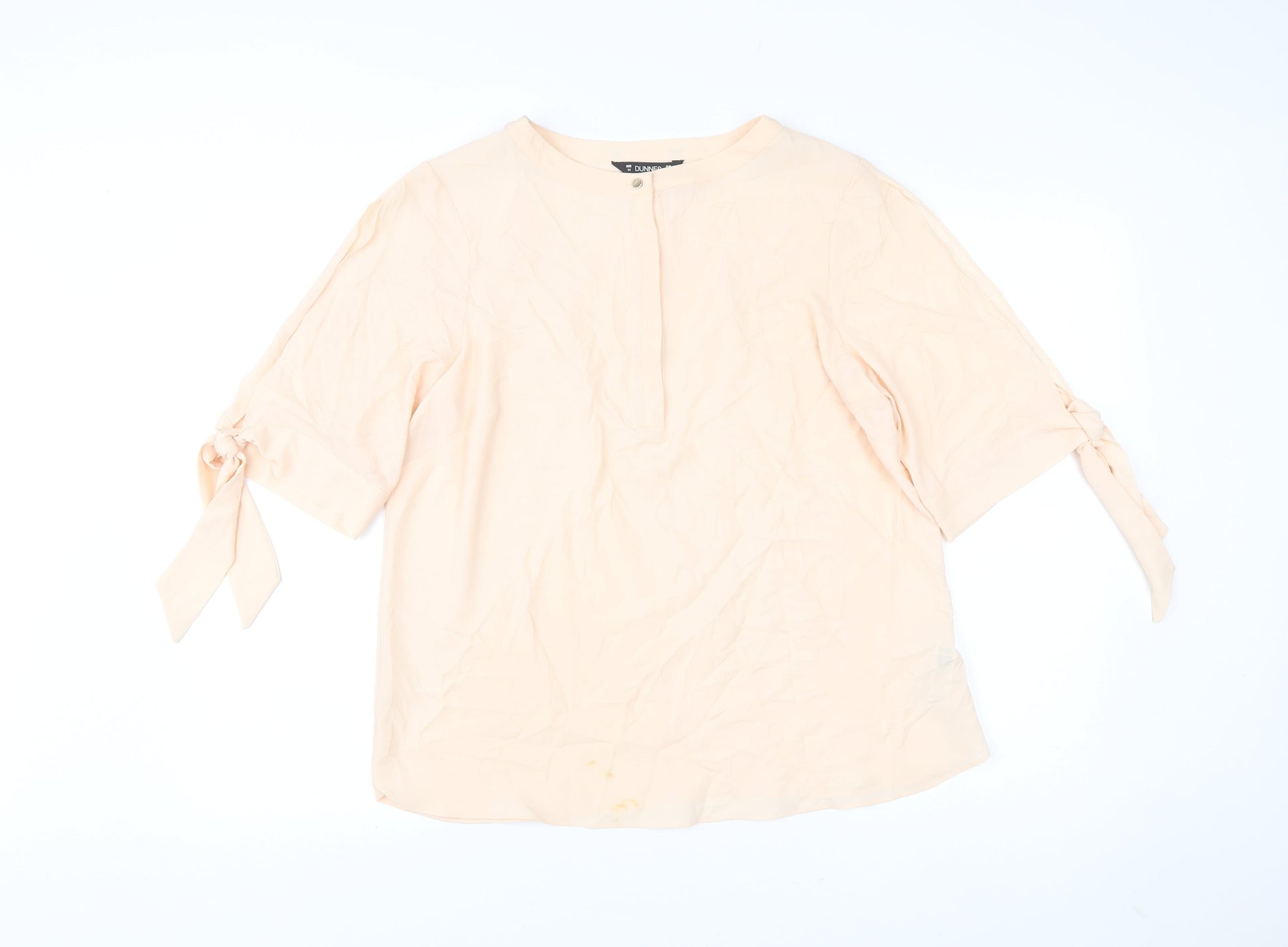 Dunnes Women’s Beige Blouse Size 14 Bow Sleeve 3/4 Lightweight
