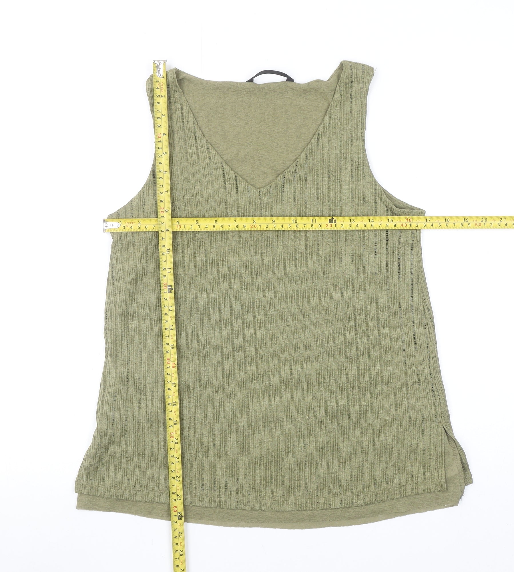 Dunnes Women’s Green V-Neck Ribbed Sleeveless Cotton Tank Top Size S