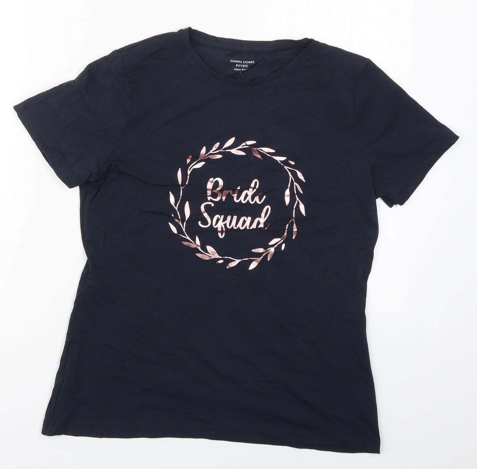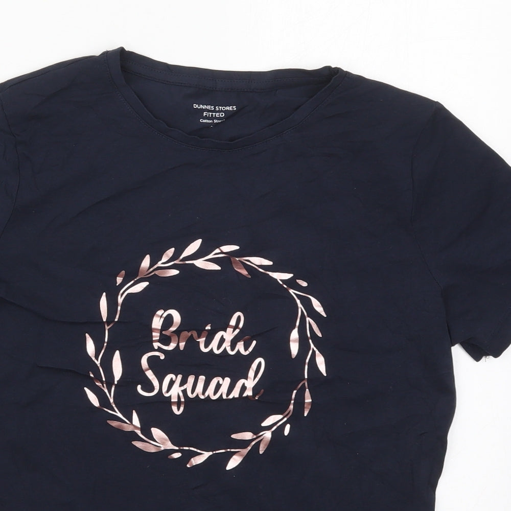 Dunnes Womens Blue Cotton Basic T-Shirt Size M Crew Neck - Bride Squad