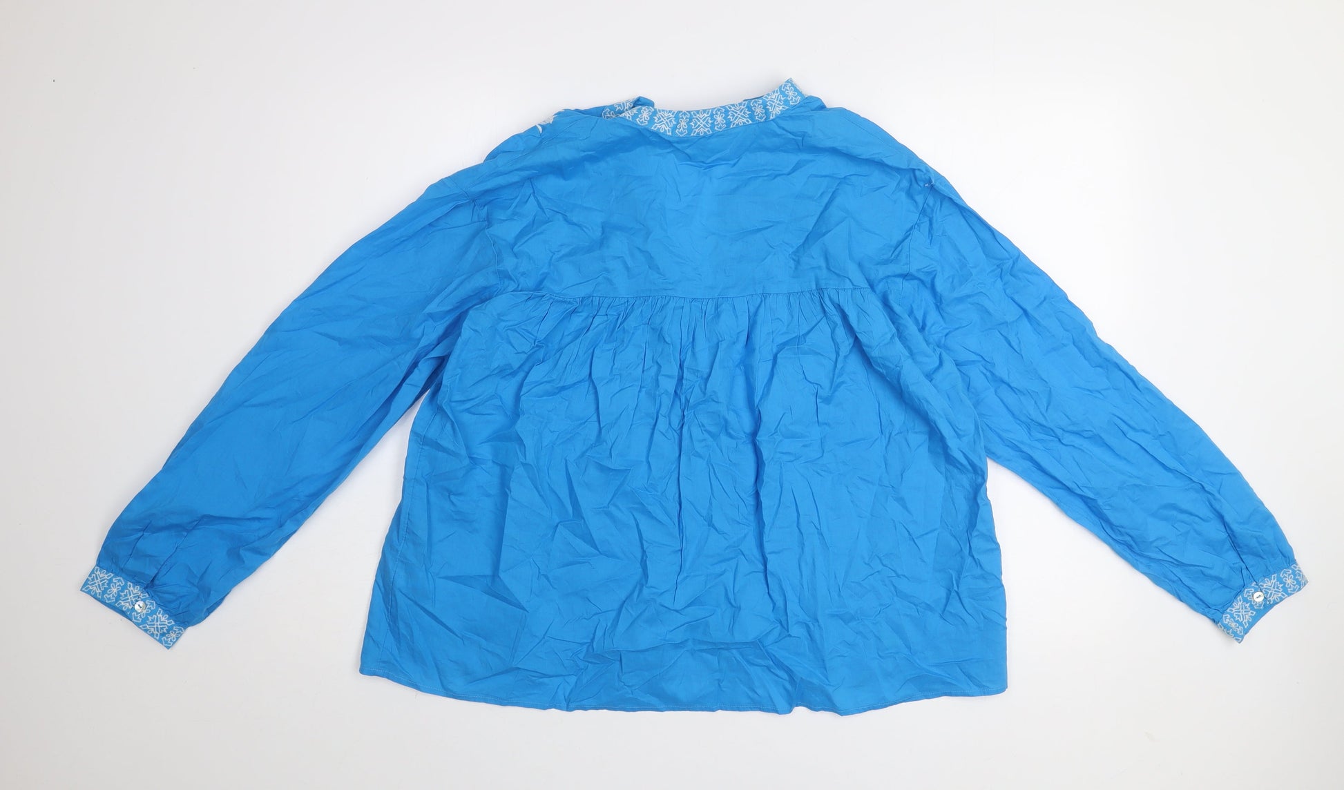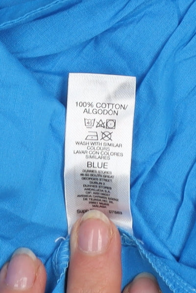 Dunnes Womens Blue Embroidered Cotton Long Sleeve Tunic Blouse Size M