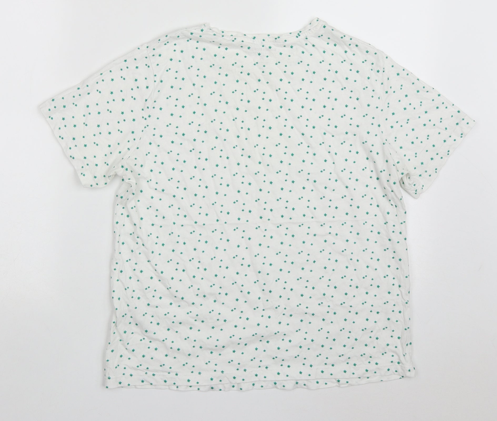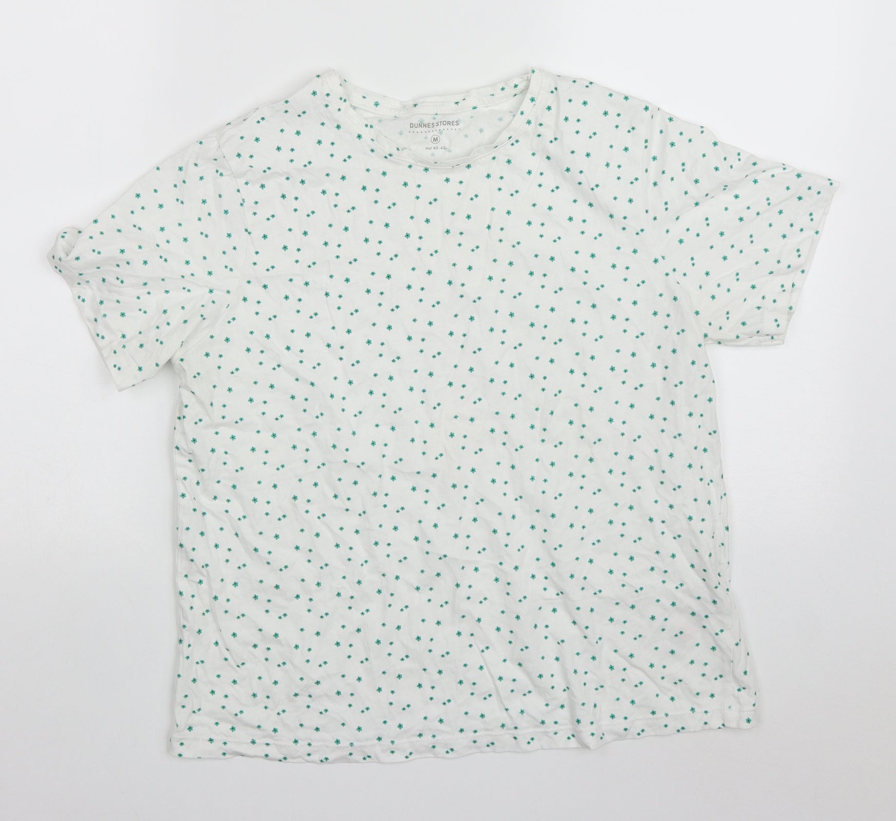 Dunnes Womens Green Floral Cotton Basic T-Shirt Size M Round Neck