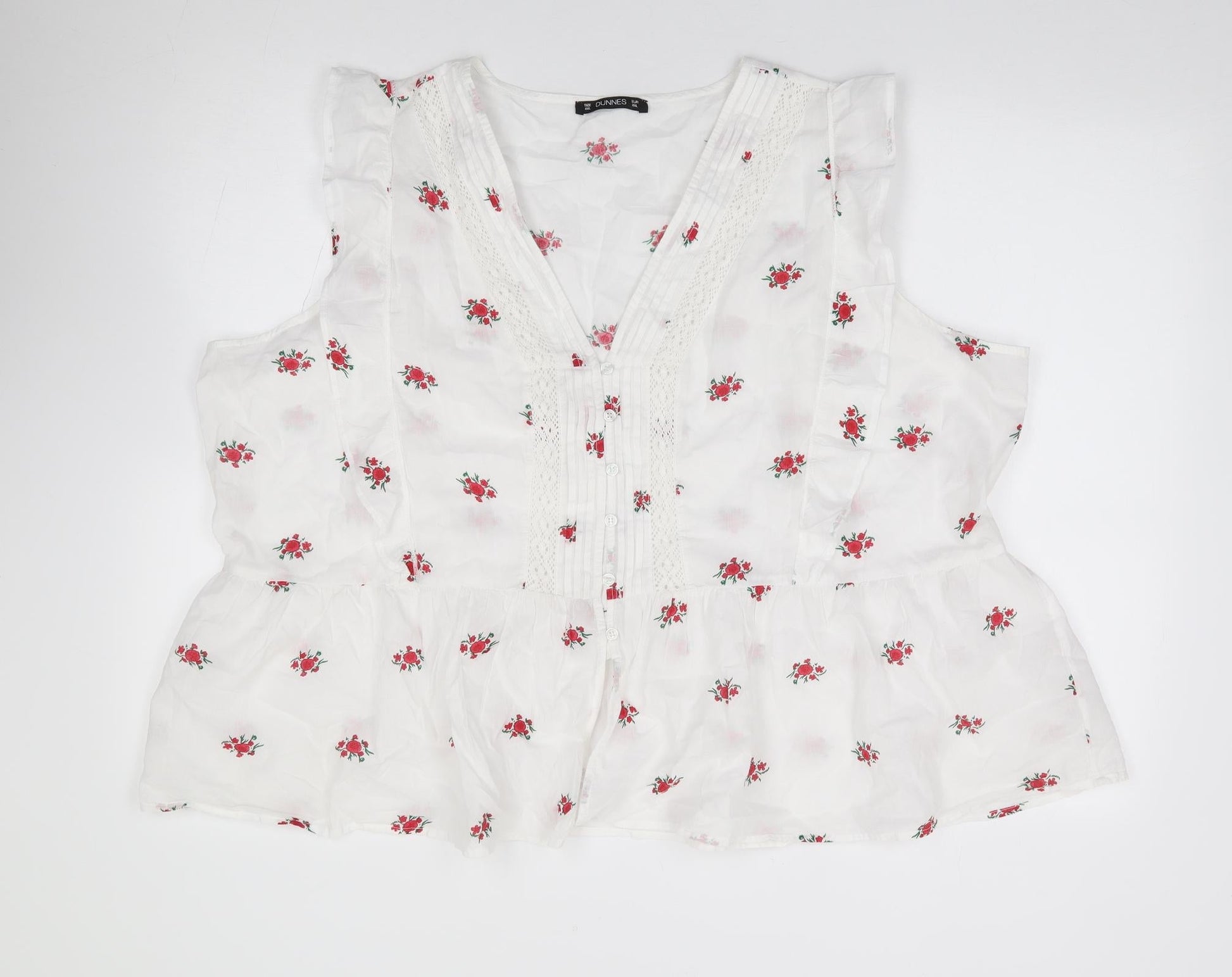 Dunnes Womens Ivory Floral 100% Cotton Jersey Button-Up Size 2XL V-Neck