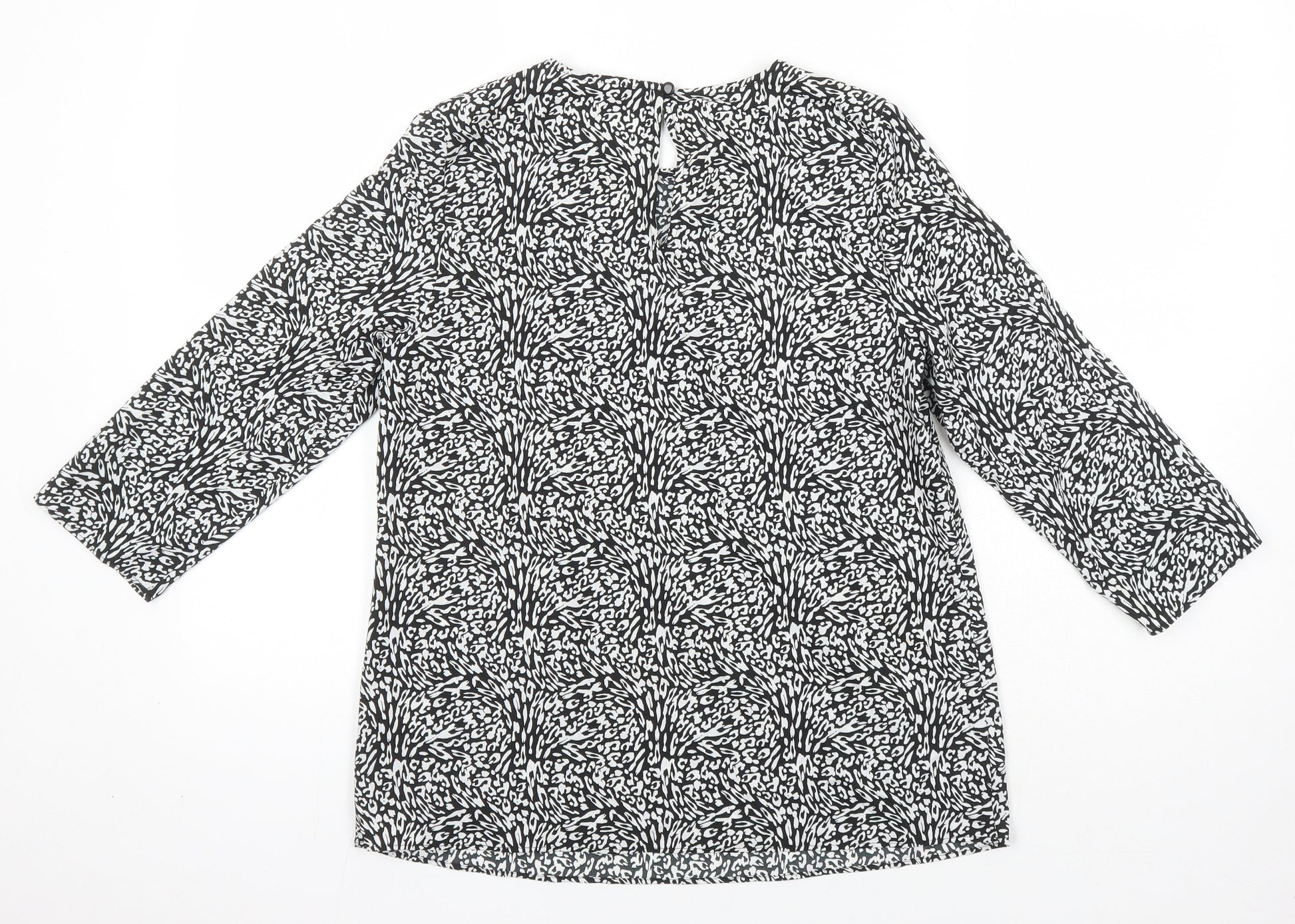 Dunnes Womens Ivory Geometric Polyester Tunic Blouse Size XS Round Neck