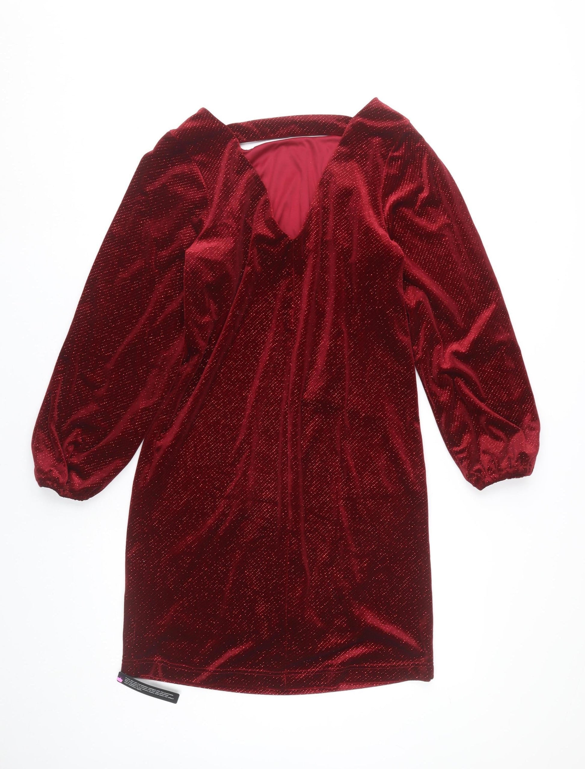 Dusk Women’s Red Velvet Shift Dress Size 10 Long Sleeve Party