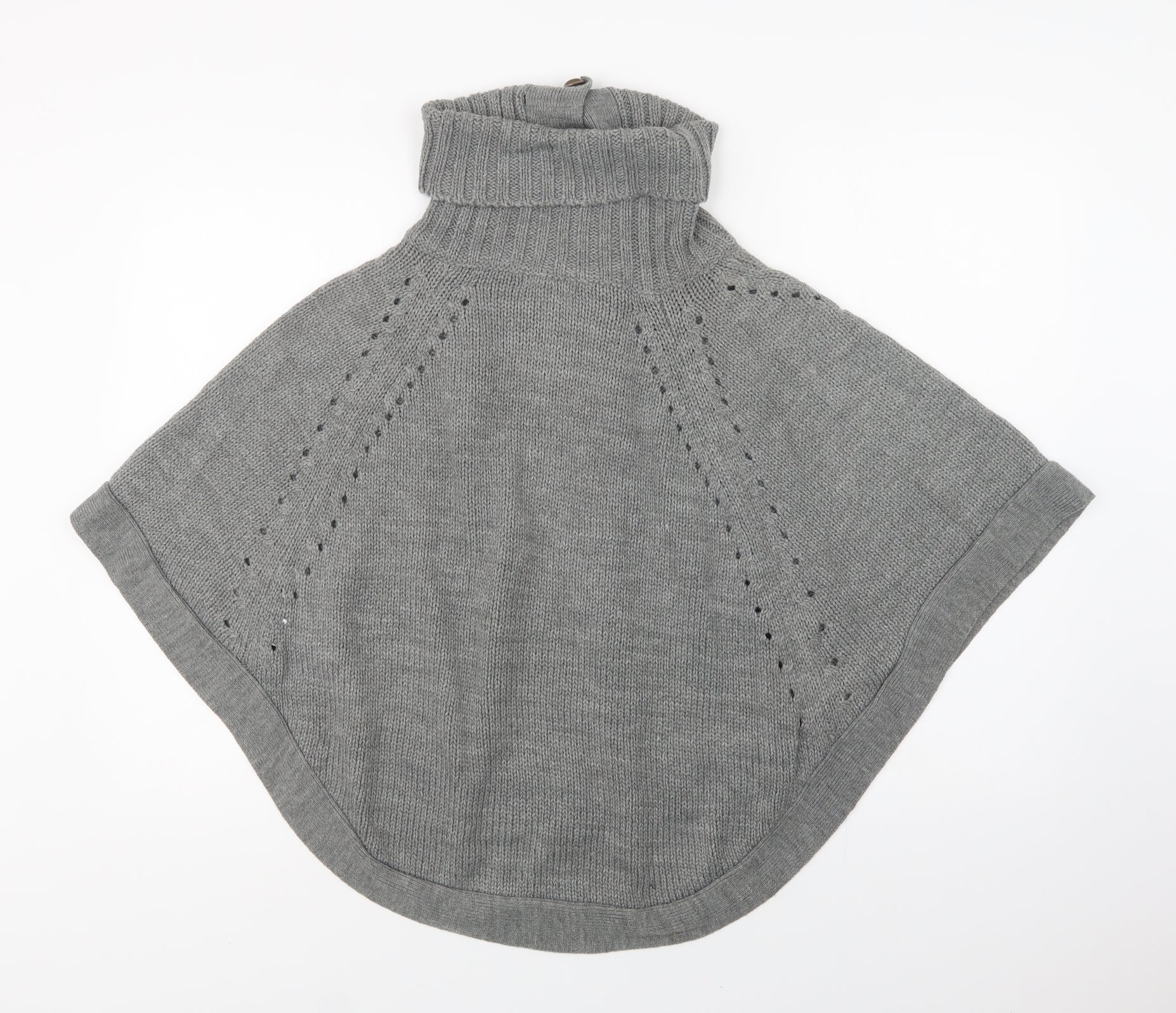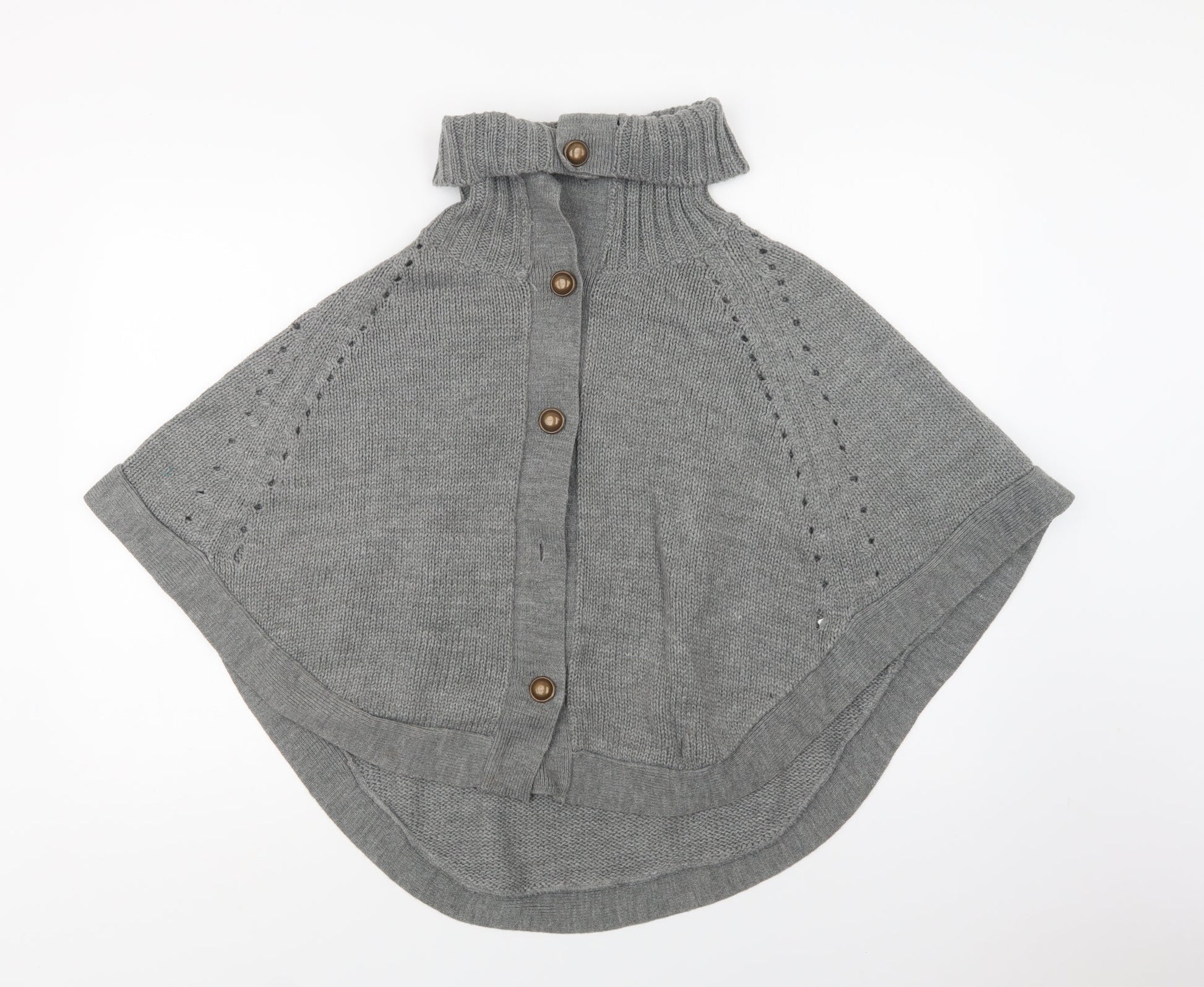 E-vie Womens Grey Overcoat Poncho One Size Button
